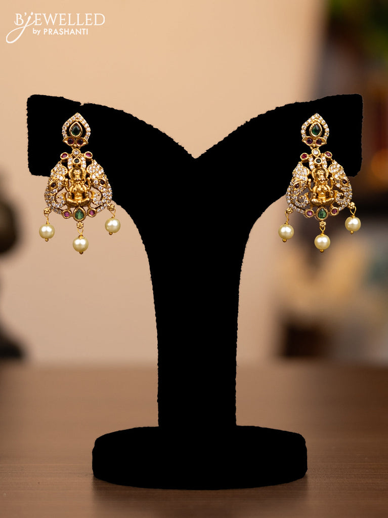 Antique necklace lakshmi pendant with kemp & cz stones and pearl hangings