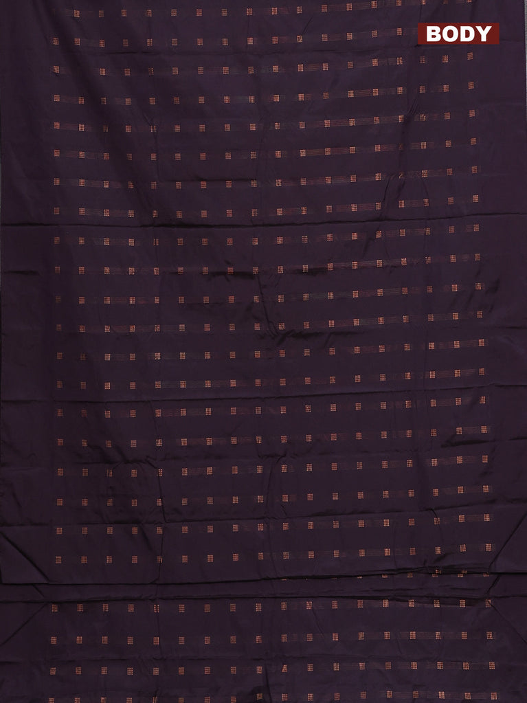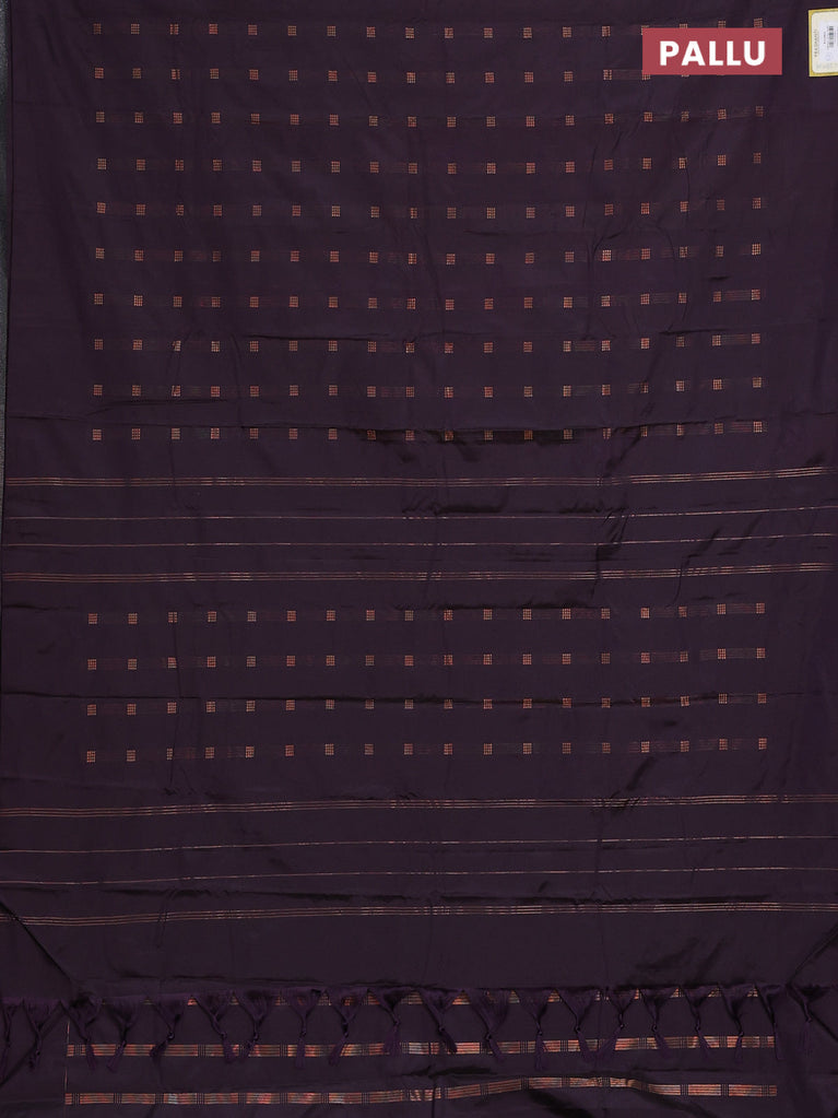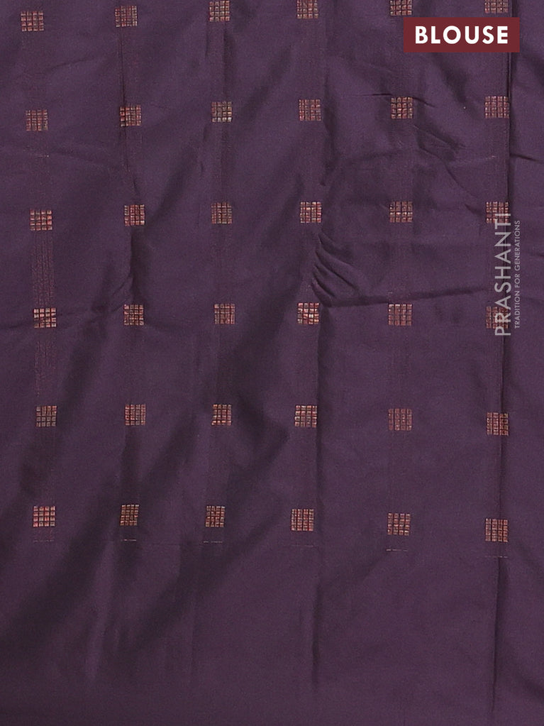 Arani semi silk saree dark purple and dark mustard with allover copper zari weaves and zari checked border