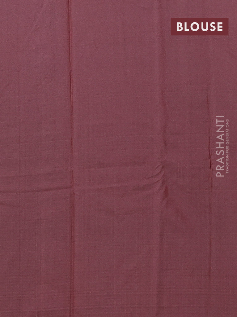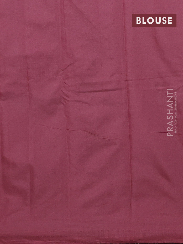 Arani semi silk saree dark magenta pink with silver zari woven buttas in borderless style