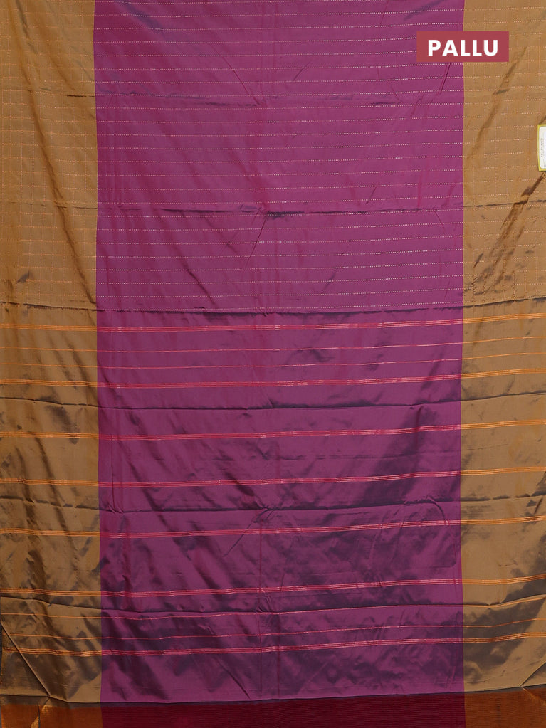 Arani semi silk saree deep purple and dark mustard with plain body and zari woven simple border