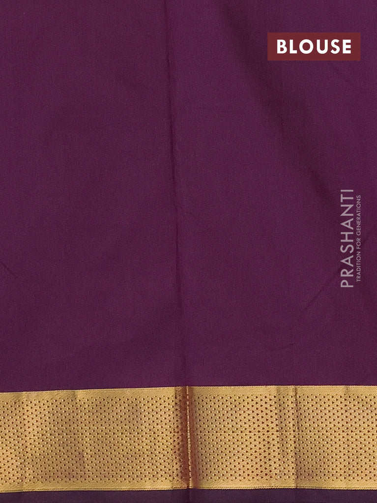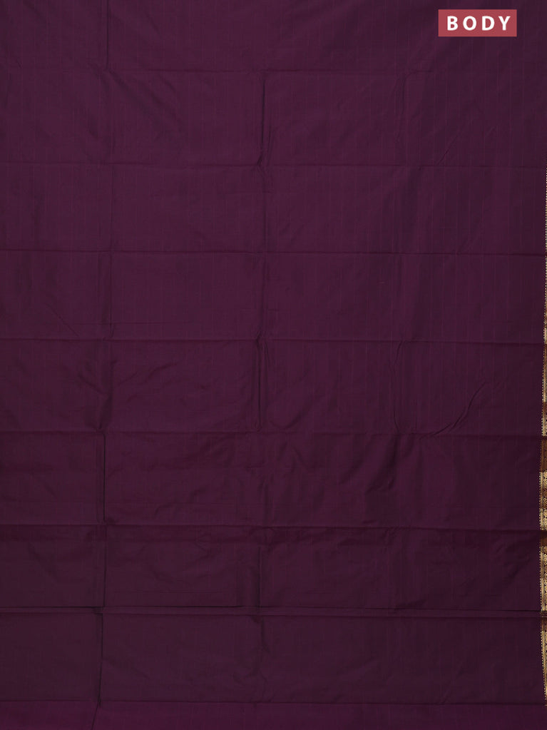 Arani semi silk saree deep purple with plain body and zari woven border
