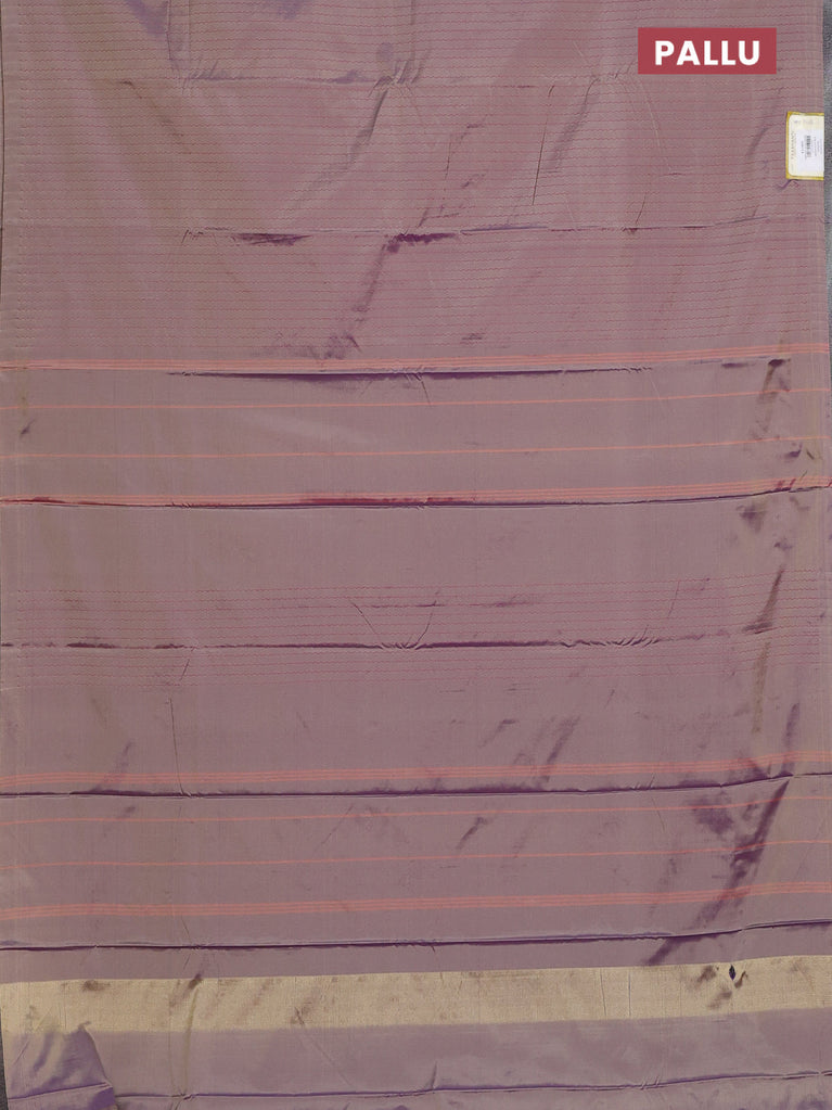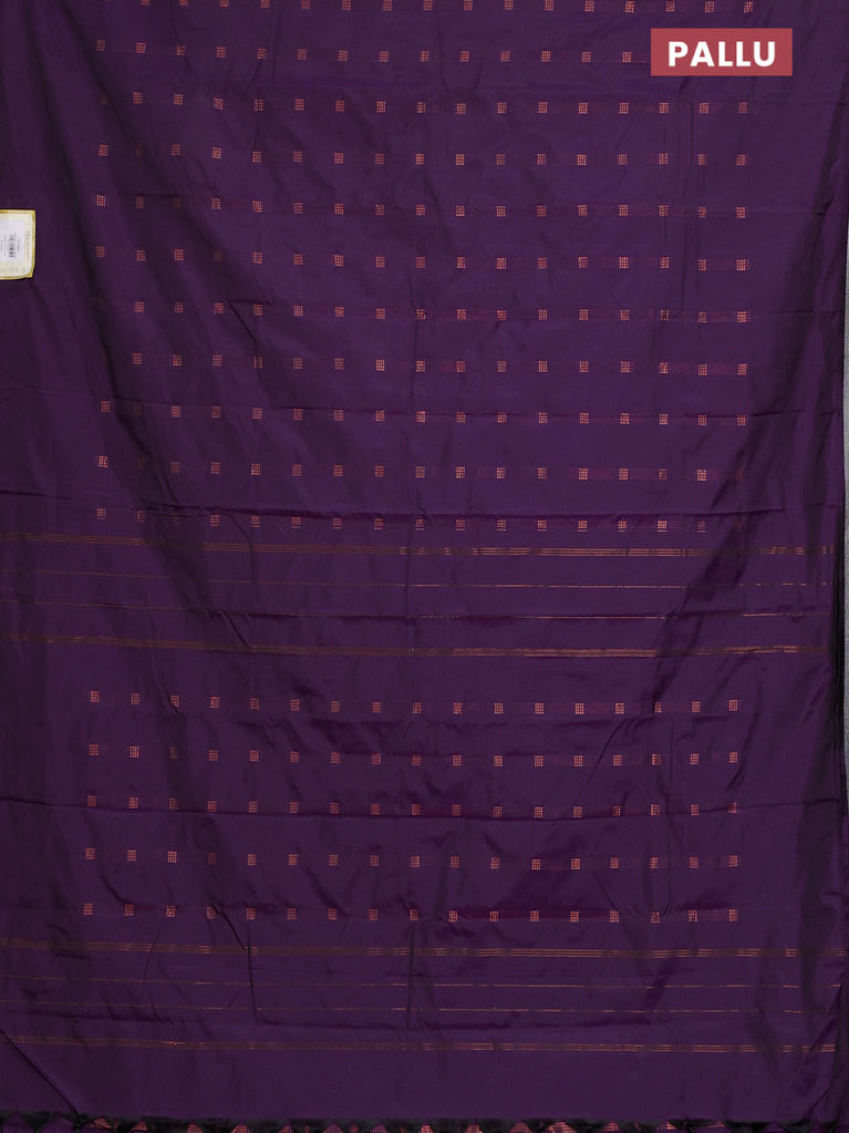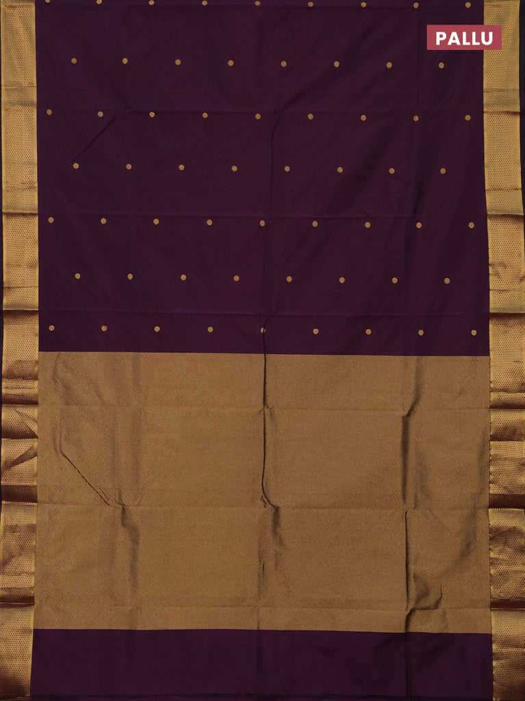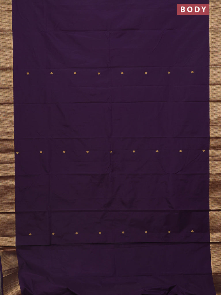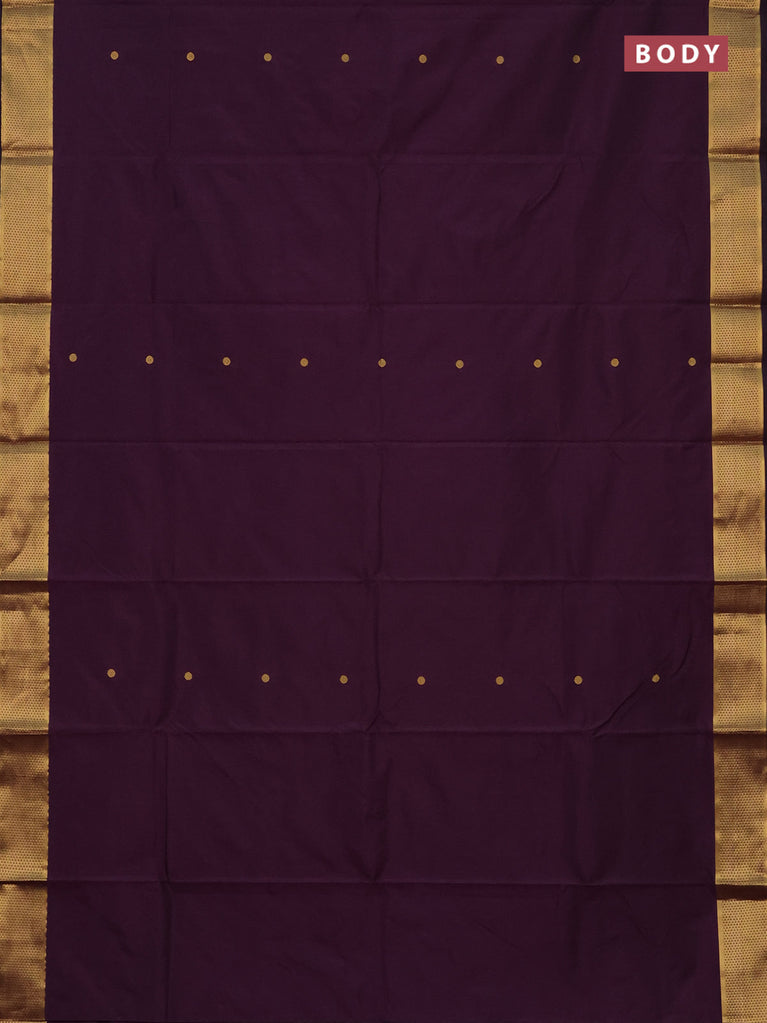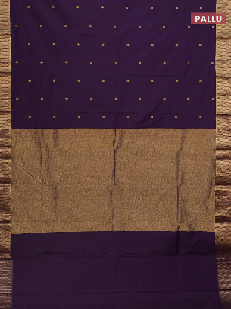 Arani semi silk saree deep purple with copper zari woven buttas in borderless style