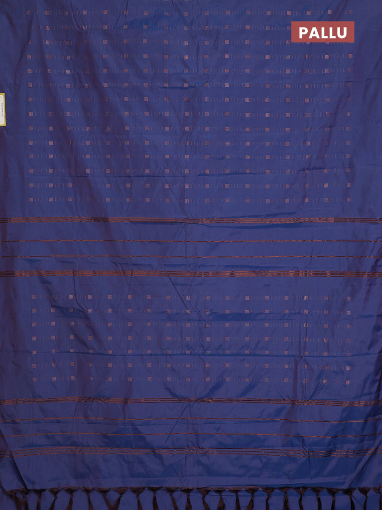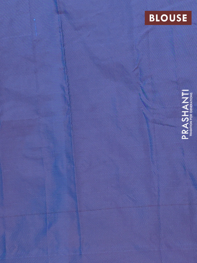 Arani semi silk saree dual shade of blue with allover copper zari weaves in borderless style