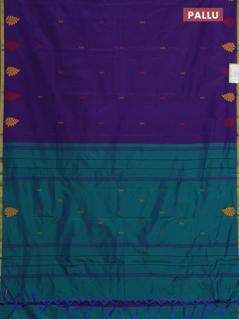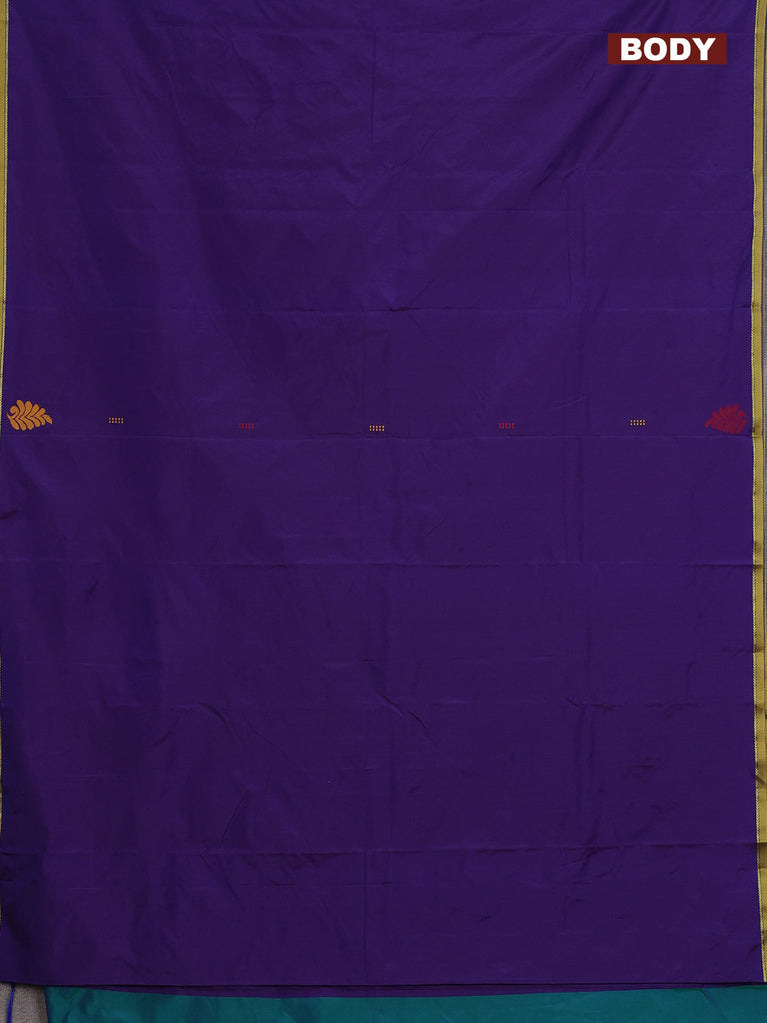 Arani semi silk saree deep violet and dual shade of green with thread woven buttas and piping border