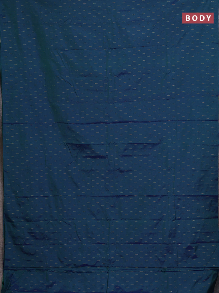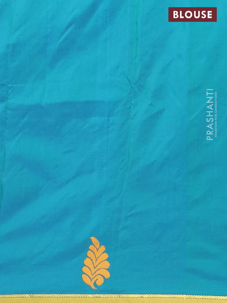 Arani semi silk saree dual shade of blue and dual shade of green with zari woven buttas and zari woven butta border