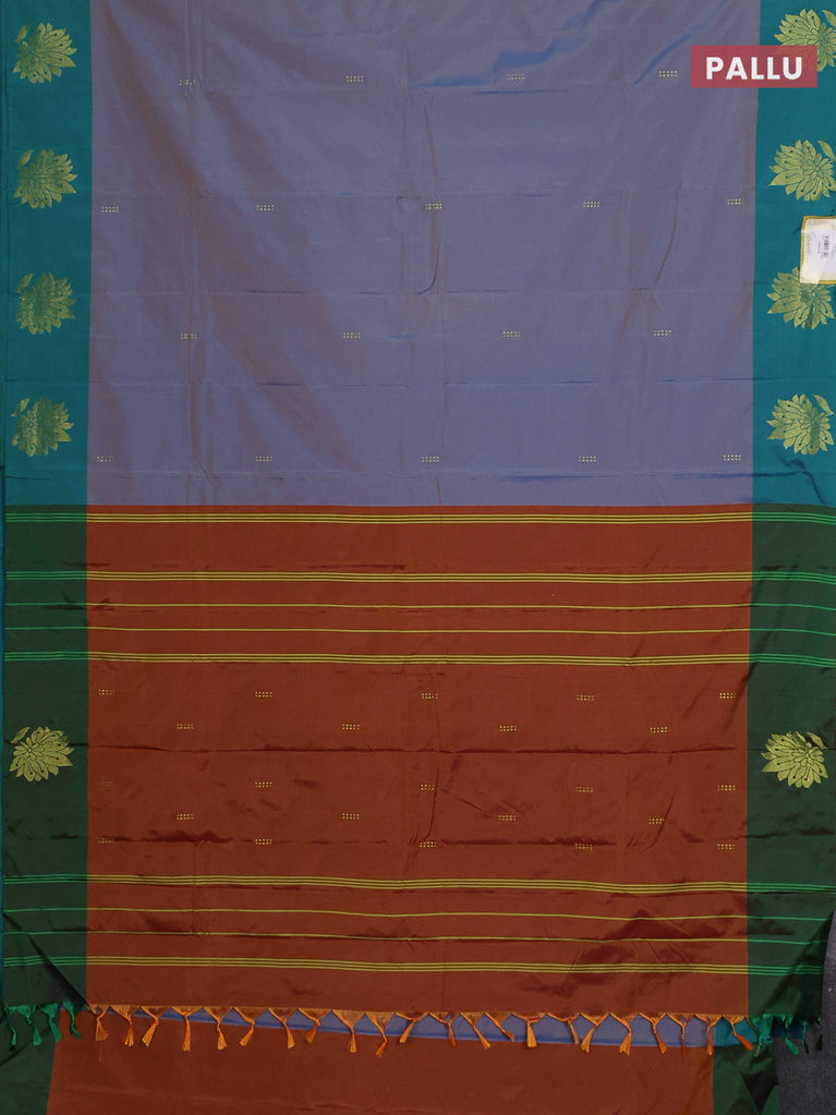 Arani semi silk saree dual shade of bluish green with zari woven buttas in borderless style