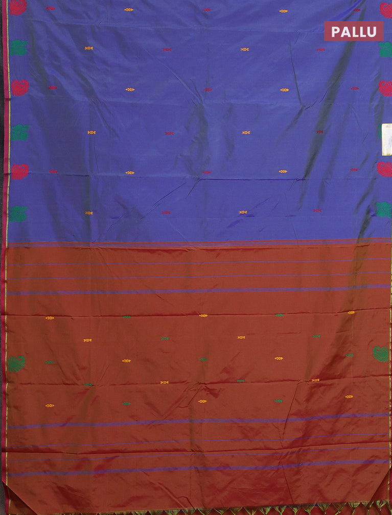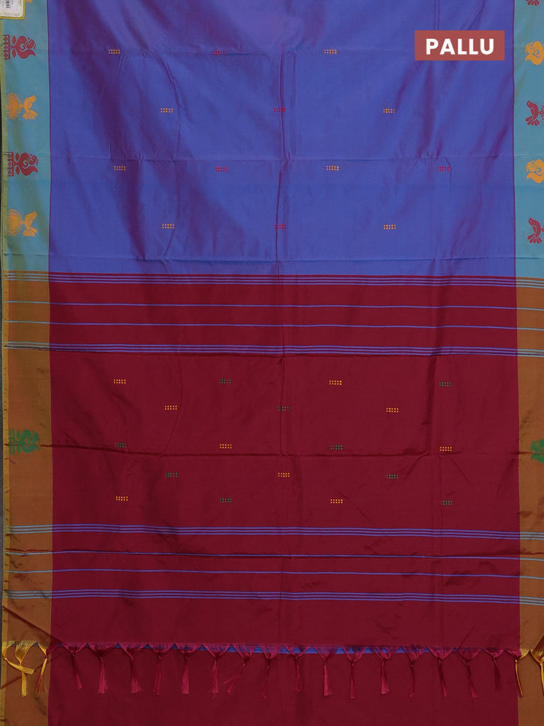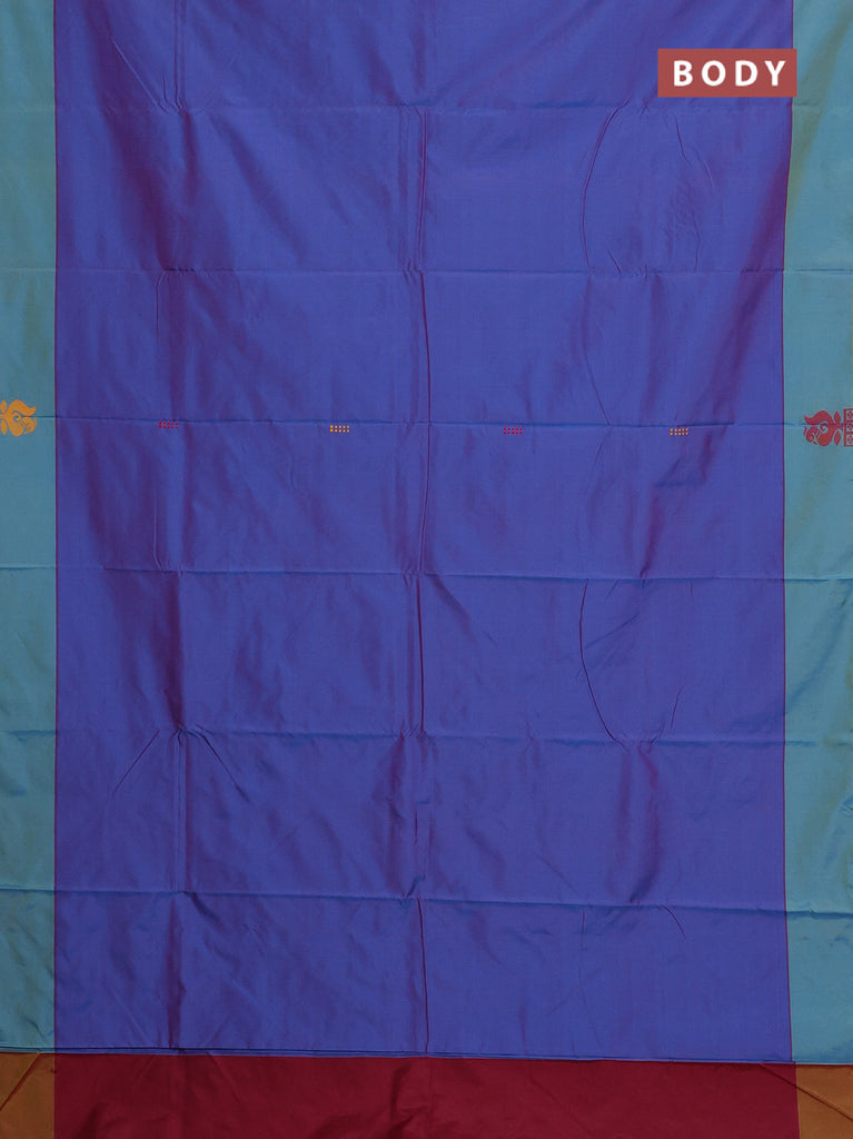 Arani semi silk saree dual shade of bluish maroon and teal blue with thread woven buttas and thread woven butta border