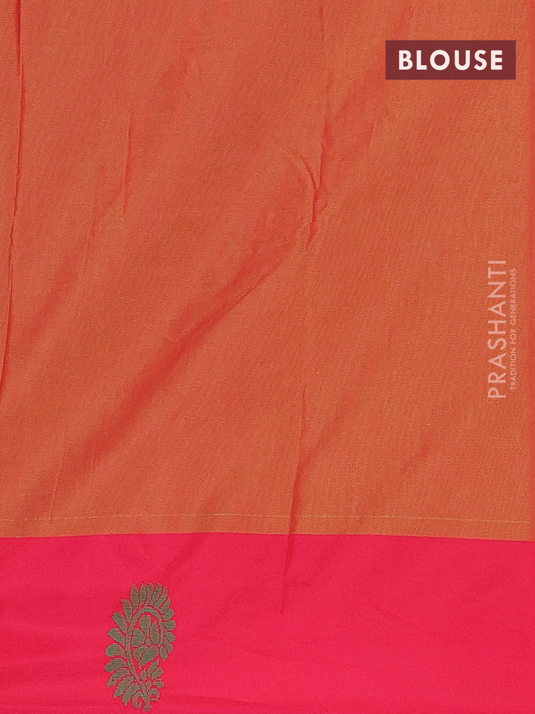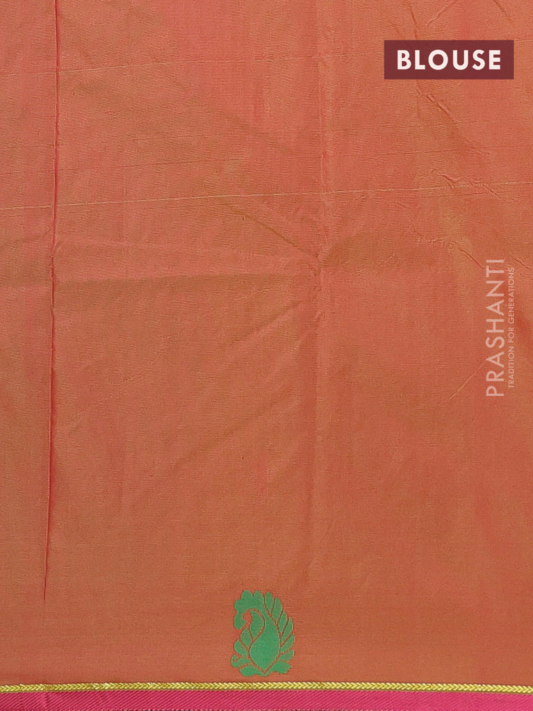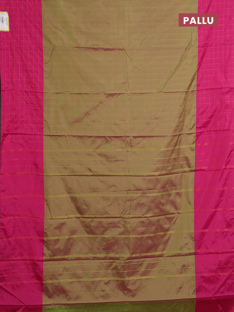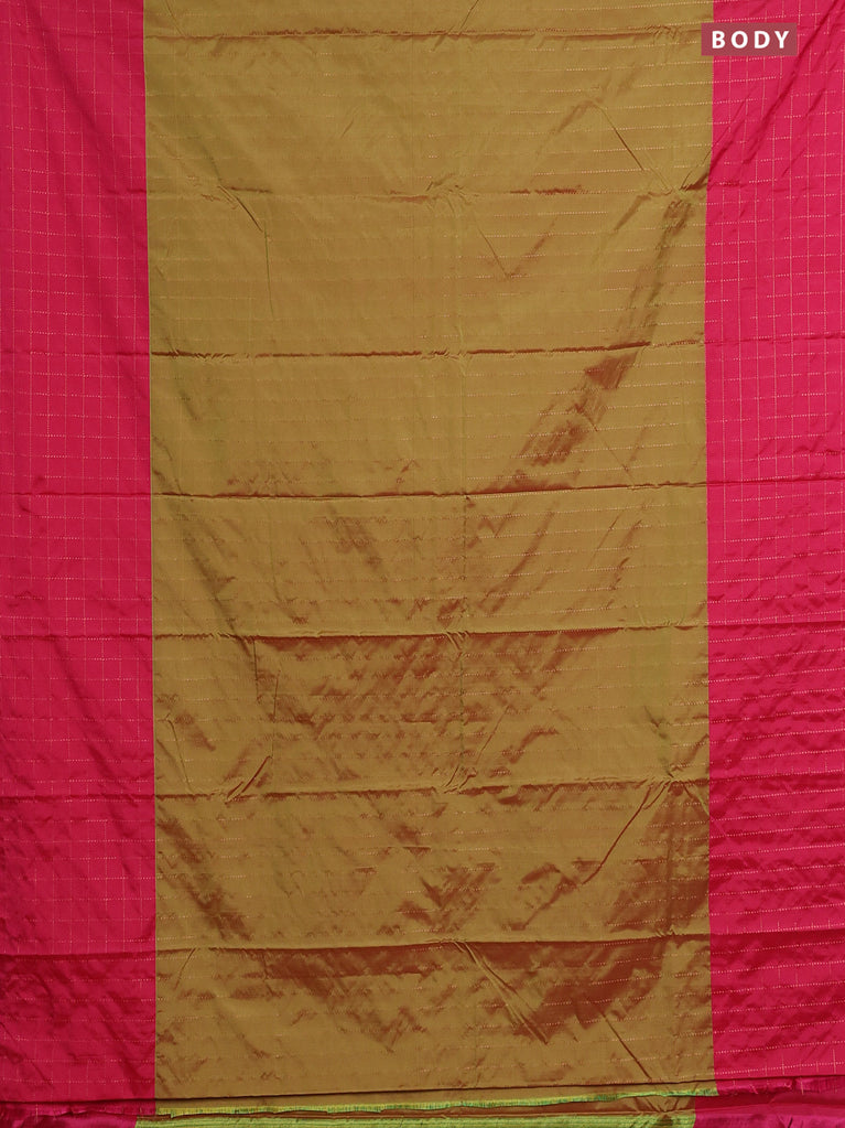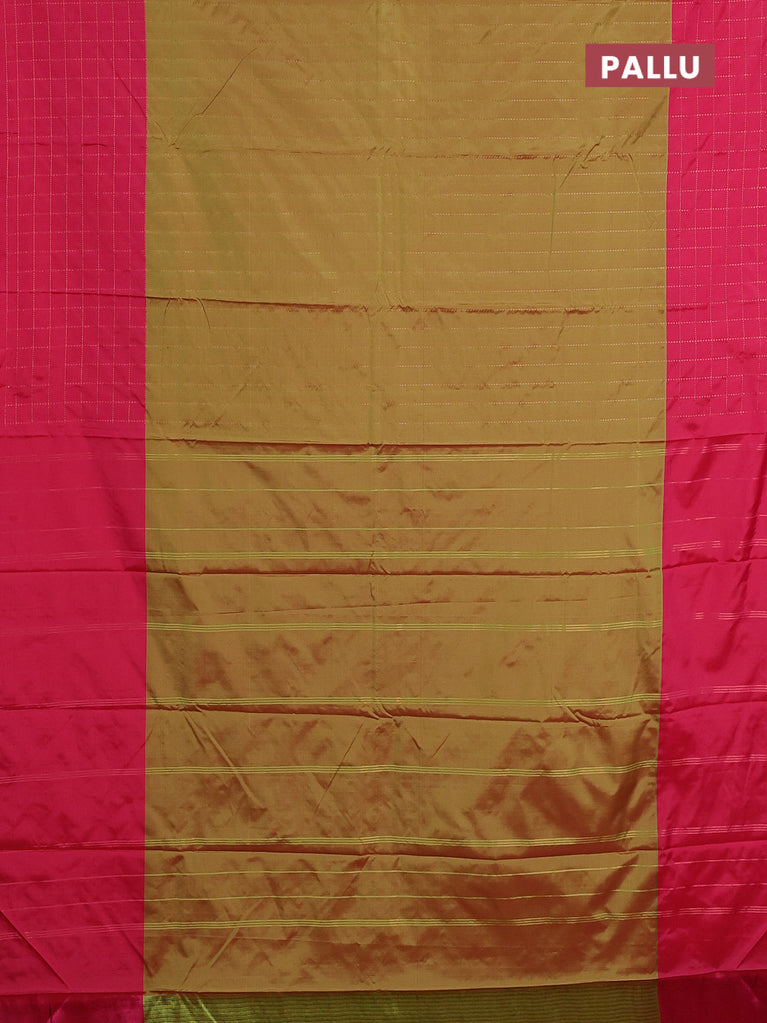 Arani semi silk saree dual shade of green and pink with allover copper zari weaves and zari checked border