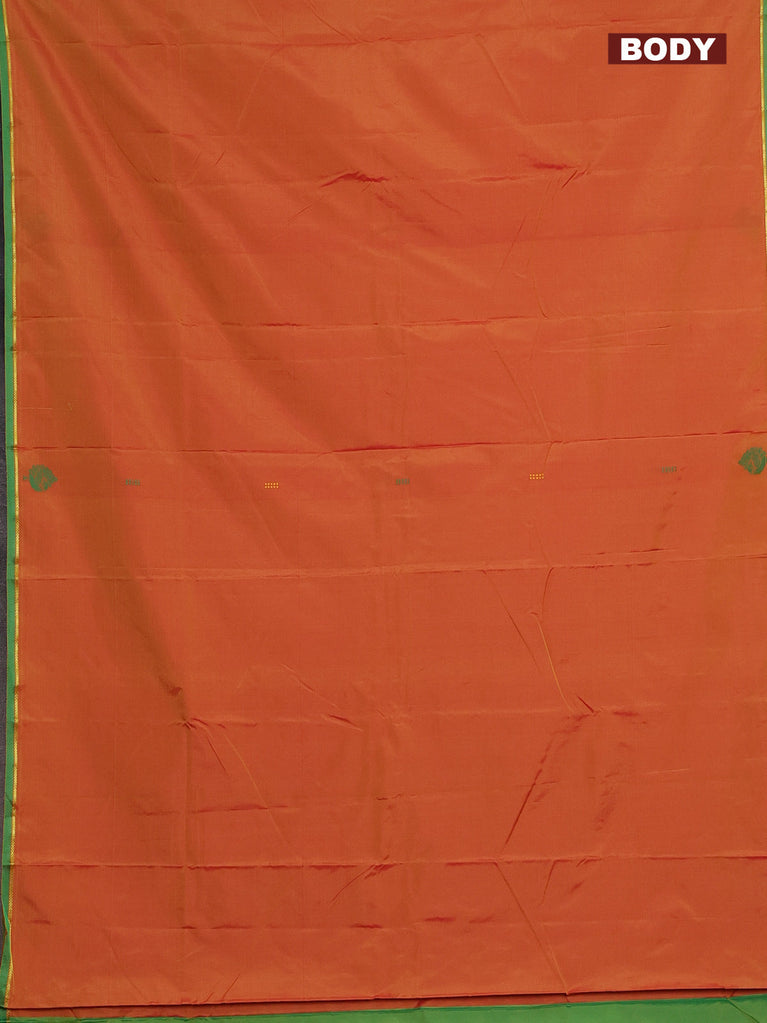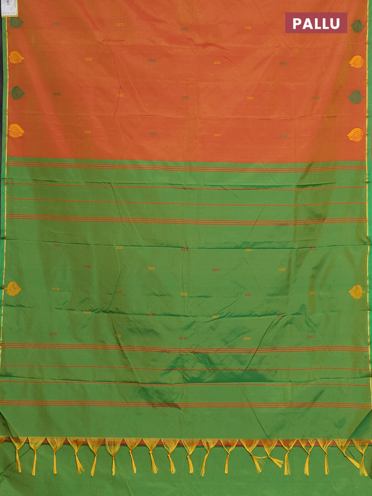 Arani semi silk saree dual shade of dark mustard and green with thread woven buttas and thread woven butta border