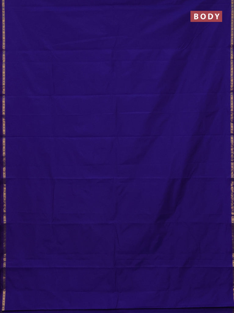 Arani semi silk saree royal blue with plain body and small zari woven border