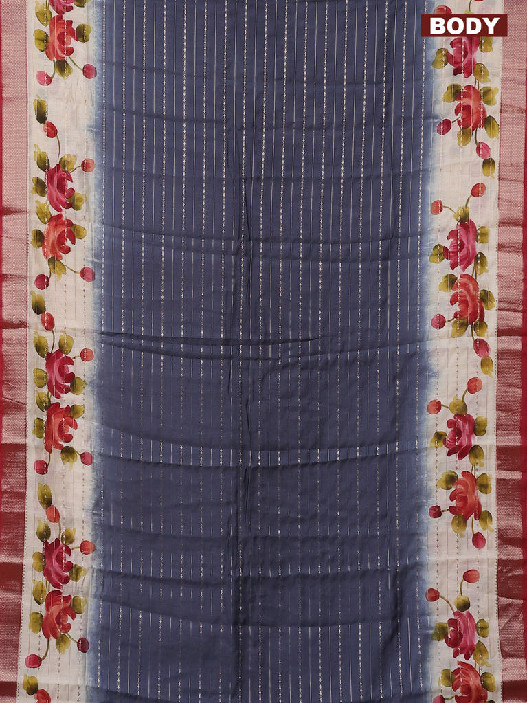 Assam semi silk saree grey and maroon with allover zari weaves and floral printed zari woven border