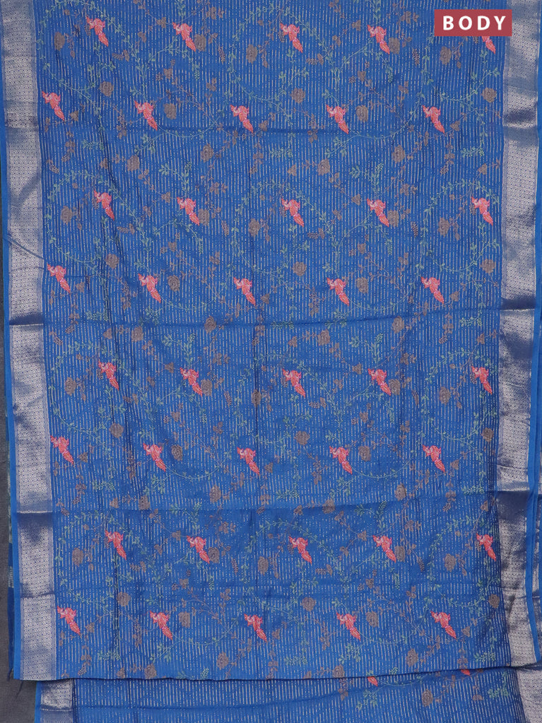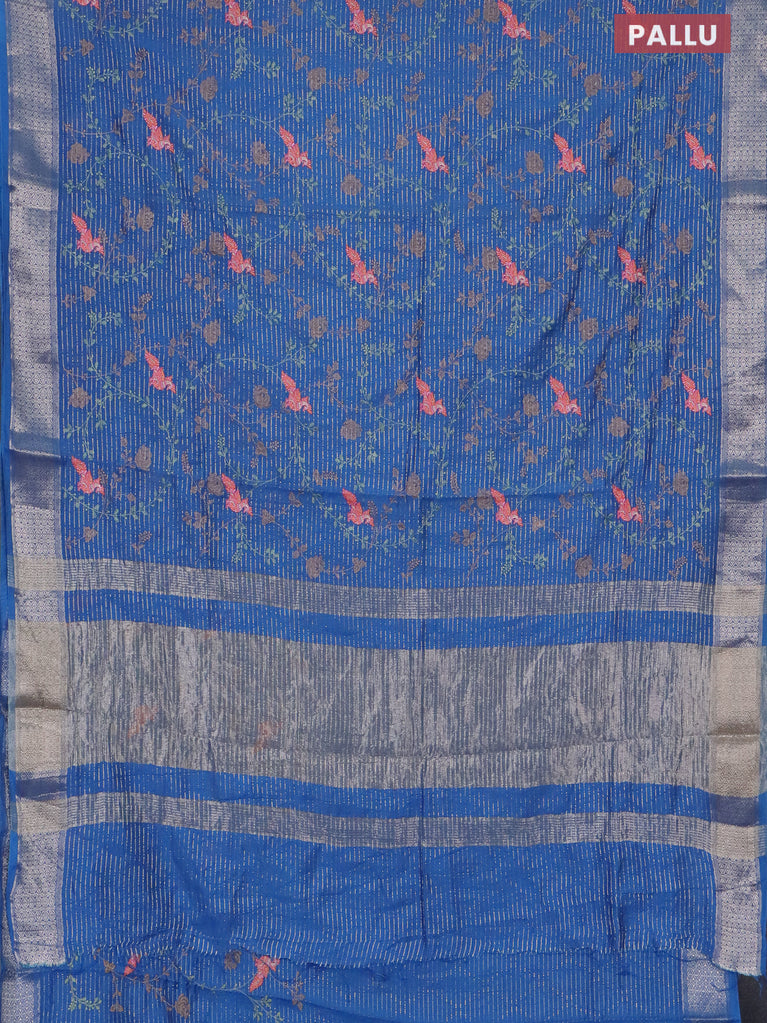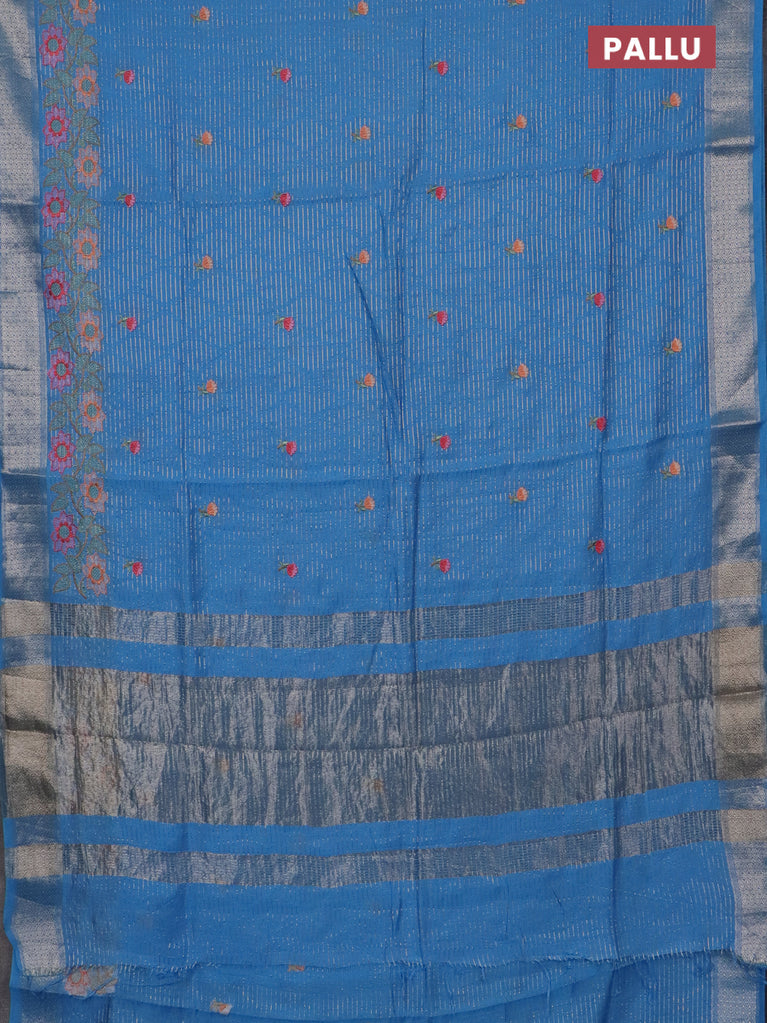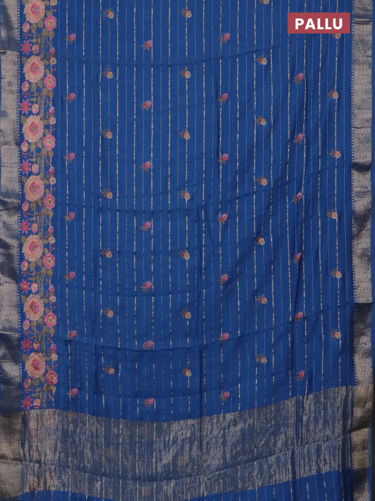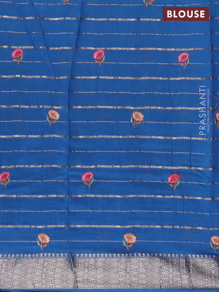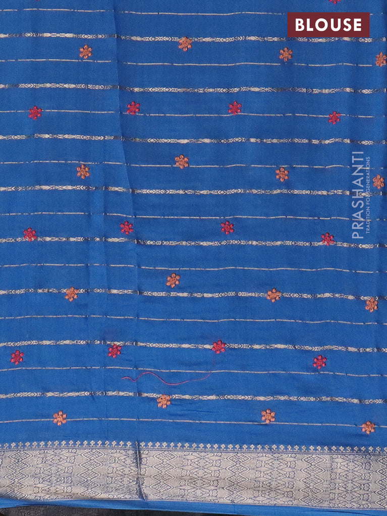 Assam silk saree blue shade with allover zari weaves & floral embroidery work buttas and zari woven border