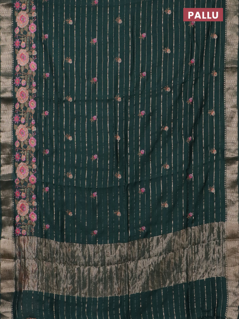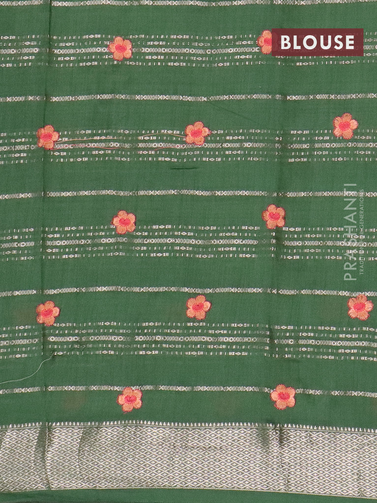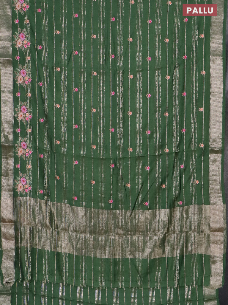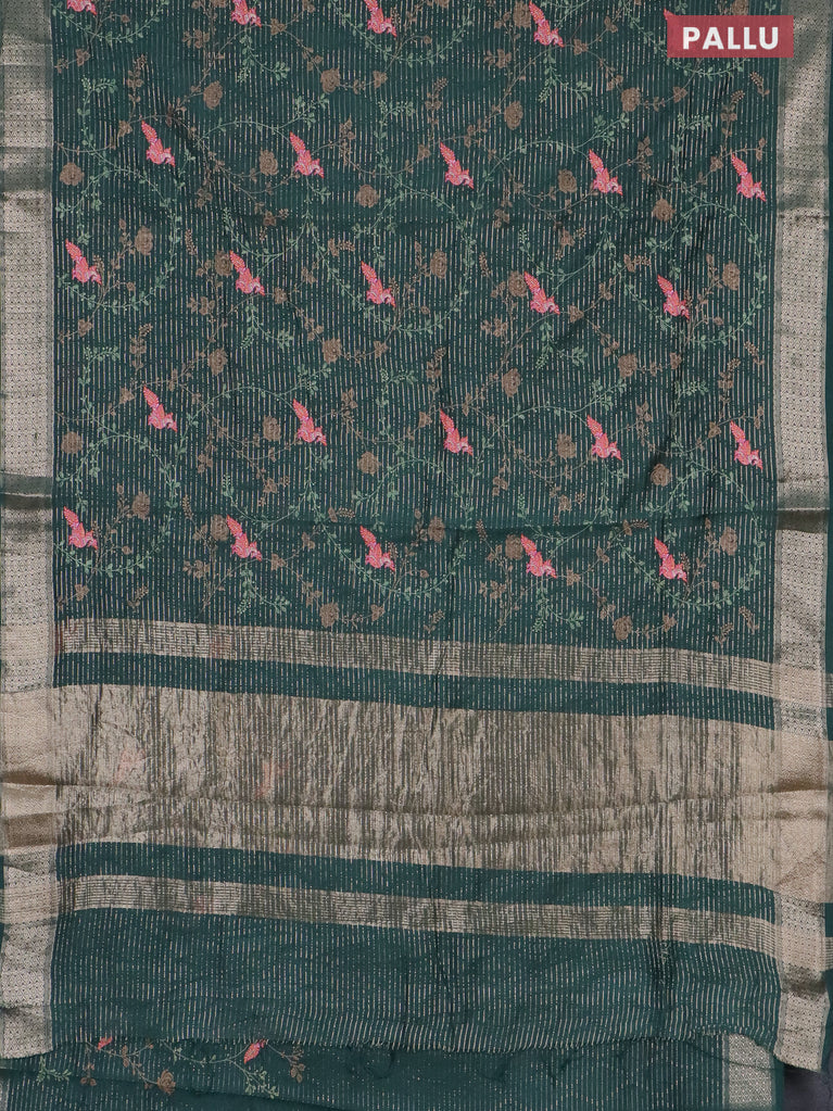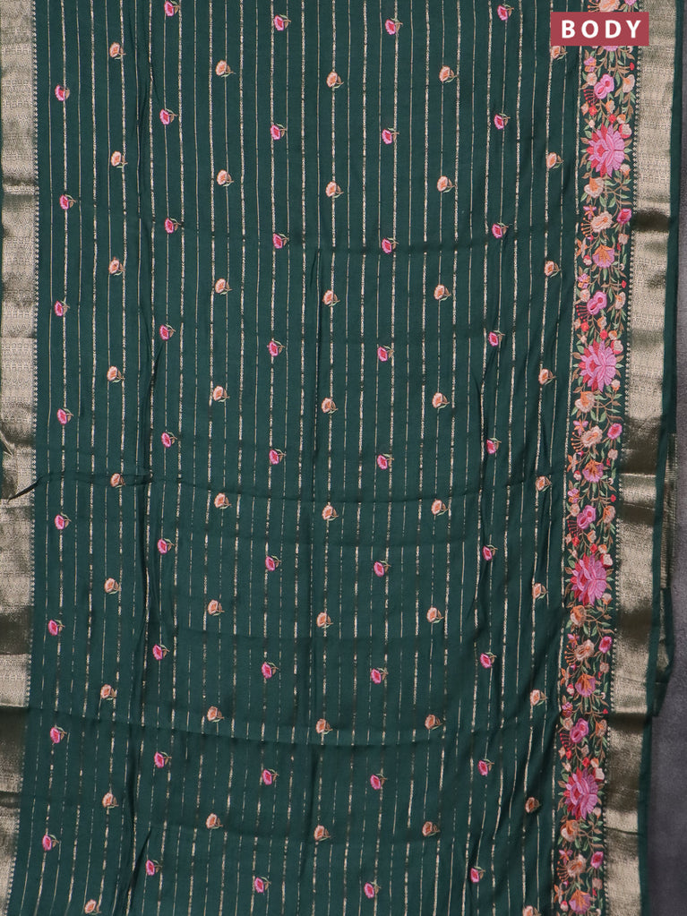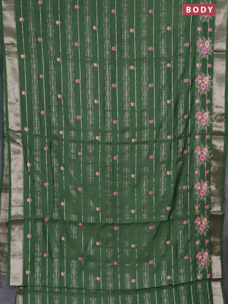 Assam silk saree bottle green with allover zari weaves & floral embroidery work buttas and zari woven border