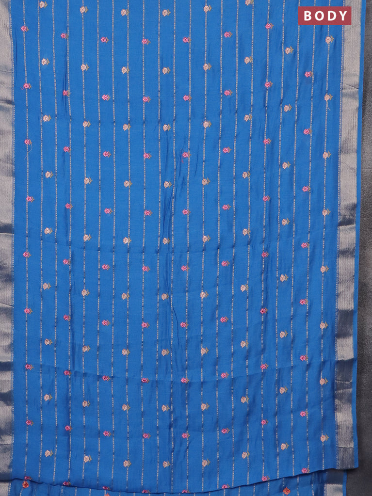Assam silk saree cs blue with allover zari weaves & floral embroidery work buttas and zari woven border