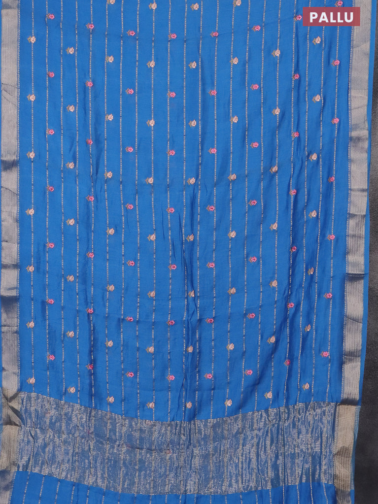 Assam silk saree cs blue with zari buttas & embroidery work and zari woven border