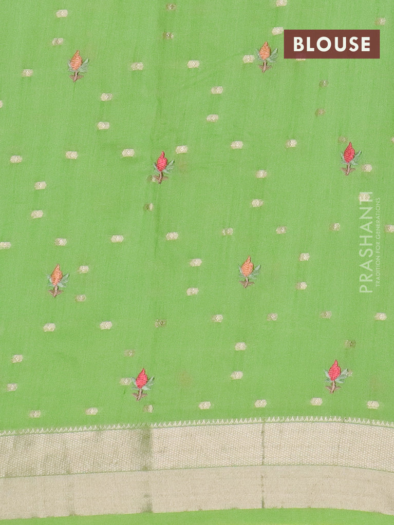 Assam silk saree light green with zari buttas & embroidery work and zari woven border