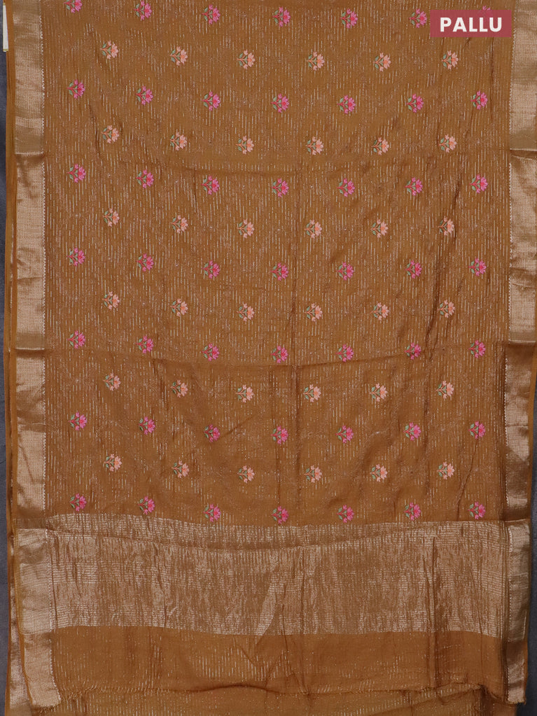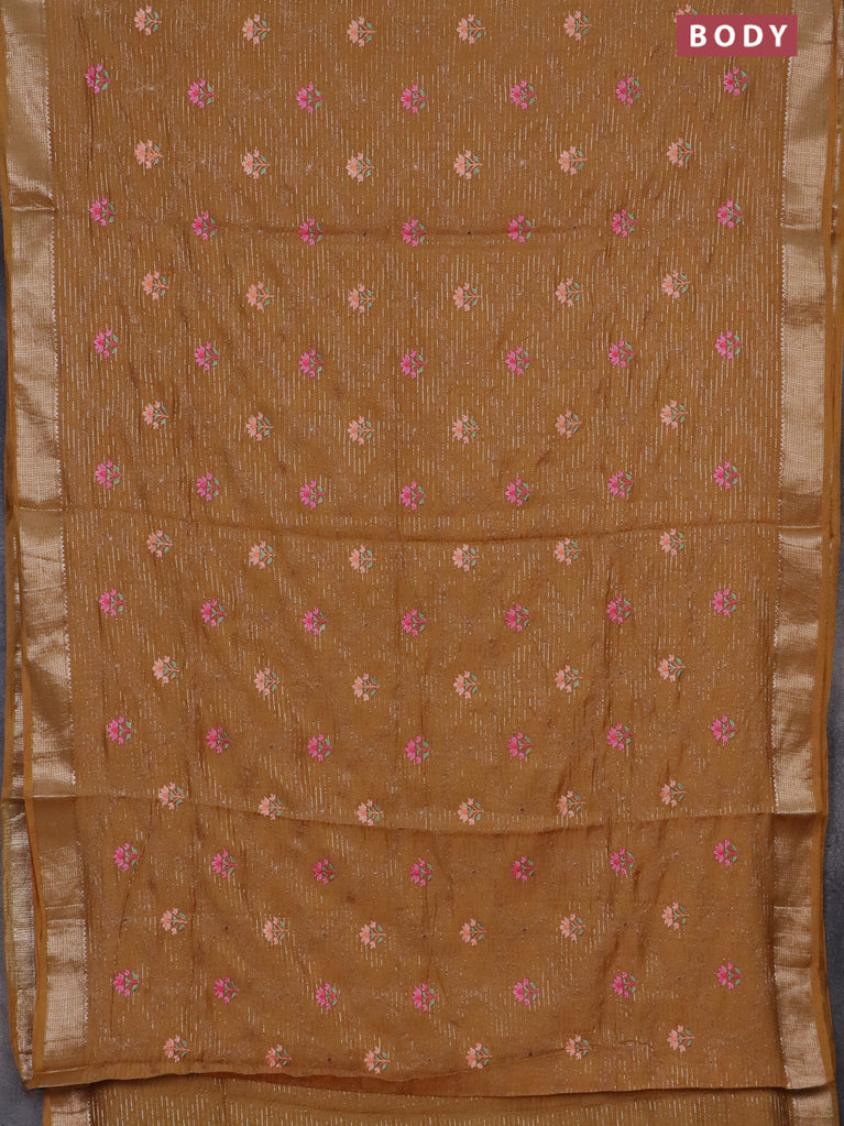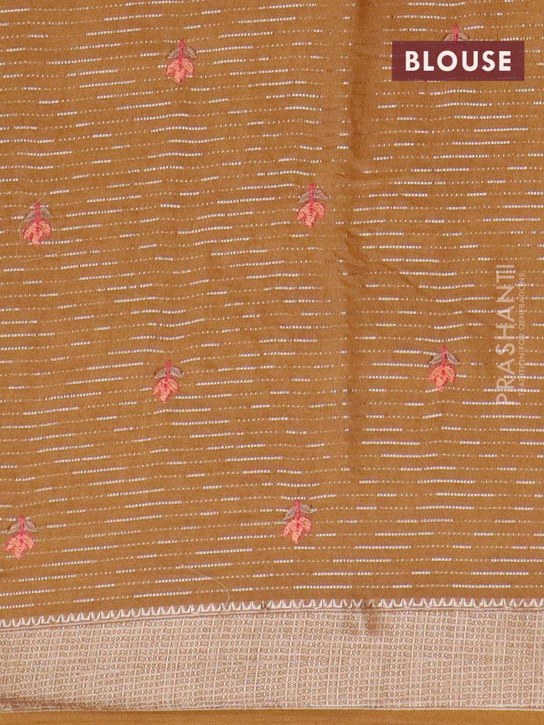 Assam silk saree mustard shade with allover zari weaves & embroidery work and zari woven border