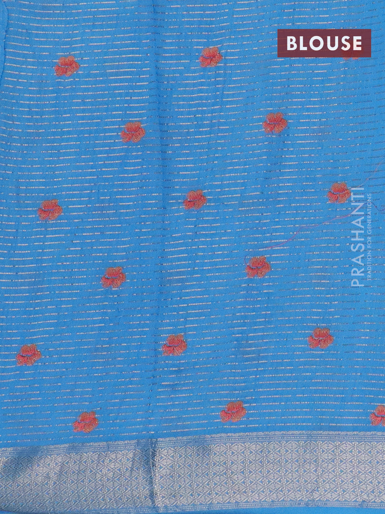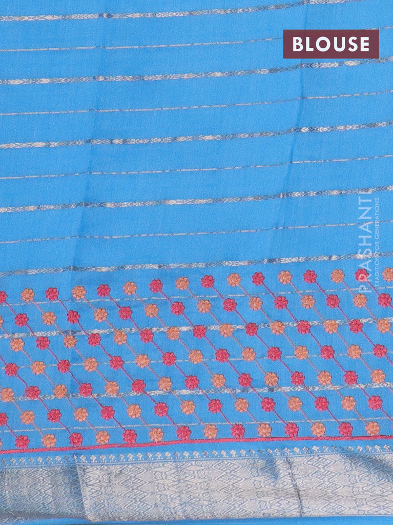 Assam silk saree light blue with allover zari weaves & floral embroidery work buttas and zari woven border