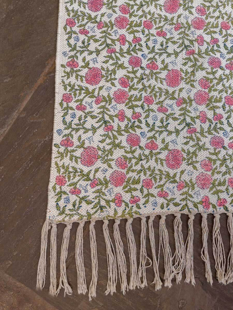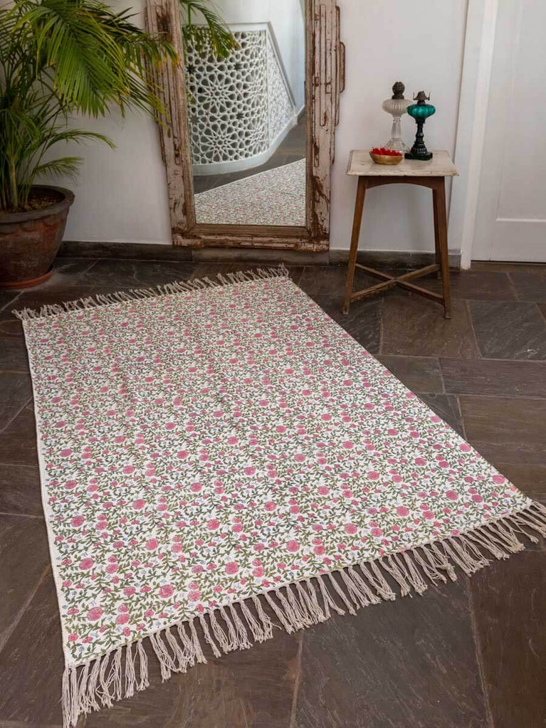 Aster Block Printed Cotton Dhurrie Rug