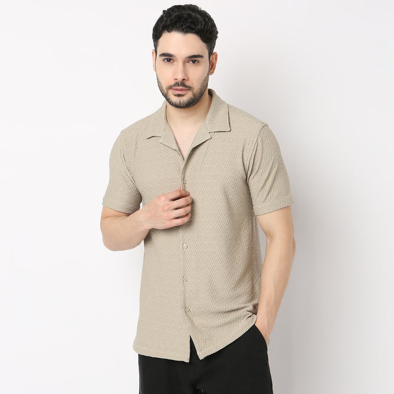 BAE™ Shirt - Camp Collar With Half Placket - Double Tone Fabric - Regular Fit