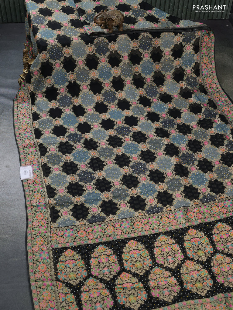 Banarasi georgette saree black and grey with bandhani prints & mina weaves