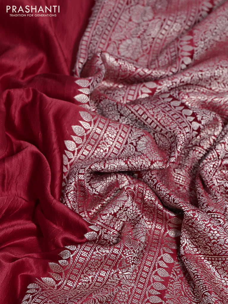 Banarasi crepe saree wine shade and green with allover thread & zari weaves and woven border