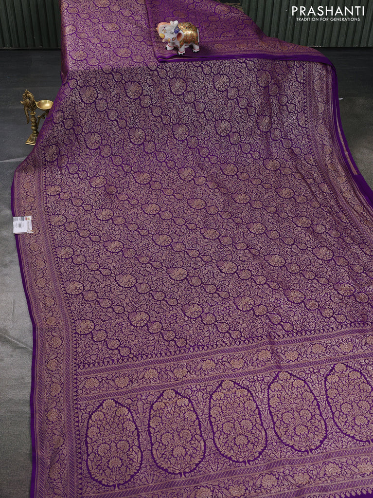 Banarasi crepe saree violet with allover thread & zari weaves and woven border