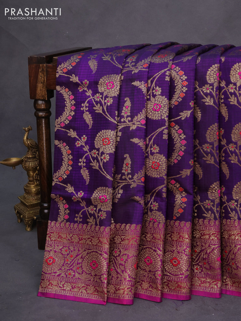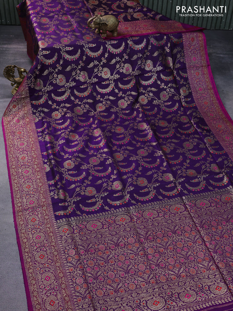 Banarasi handloom dupion silk saree deep violet and purple with allover thread & zari weaves and woven border