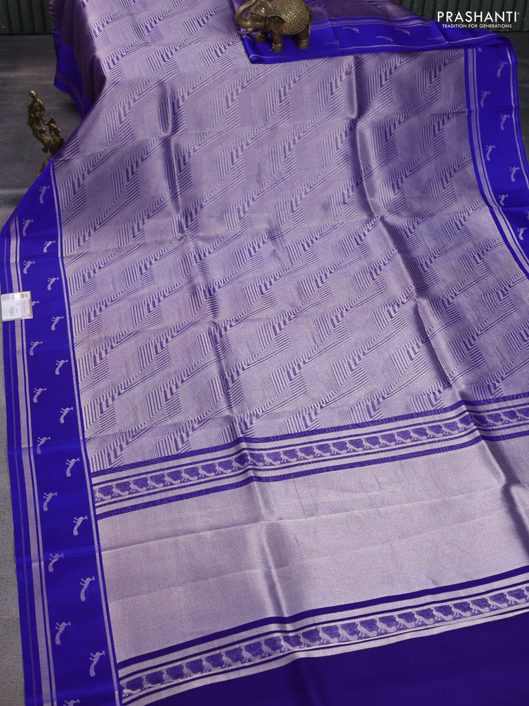 Banarasi handloom dupion silk saree purple and purple with allover thread & zari weaves floral weaves and woven border