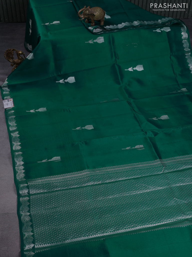 Banarasi poona silk saree green with zari woven buttas and zari woven butta border