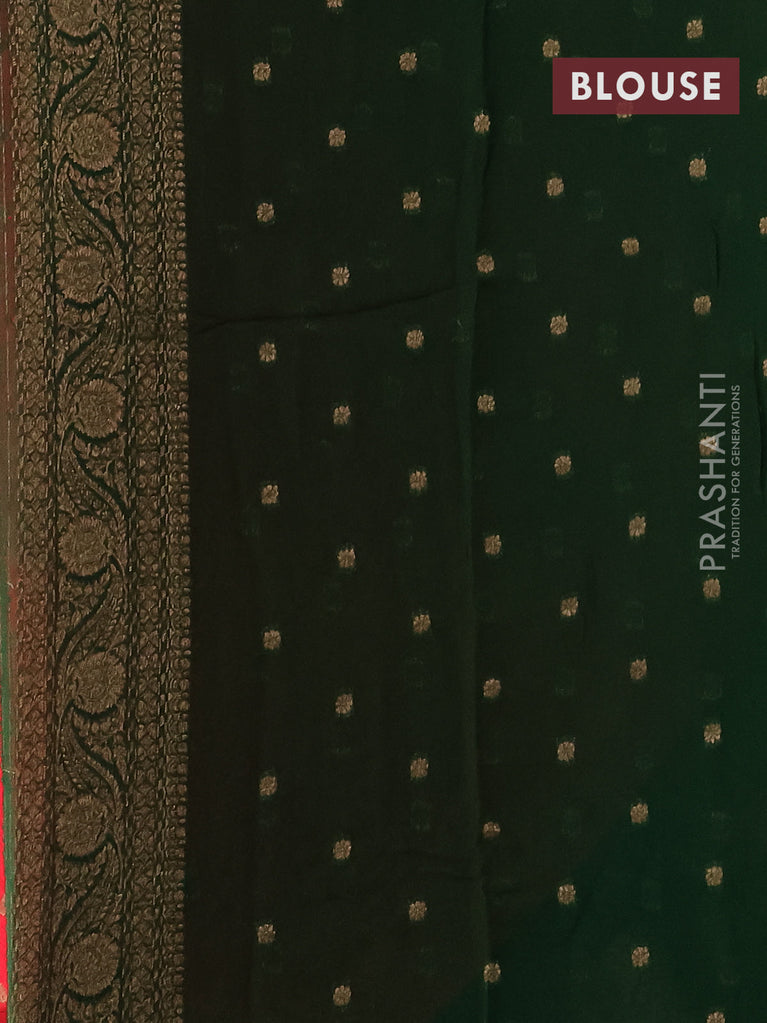 Banarasi semi georgette saree green and red with allover thread & zari woven buttas and woven border
