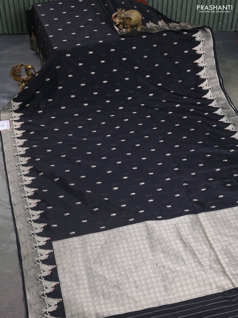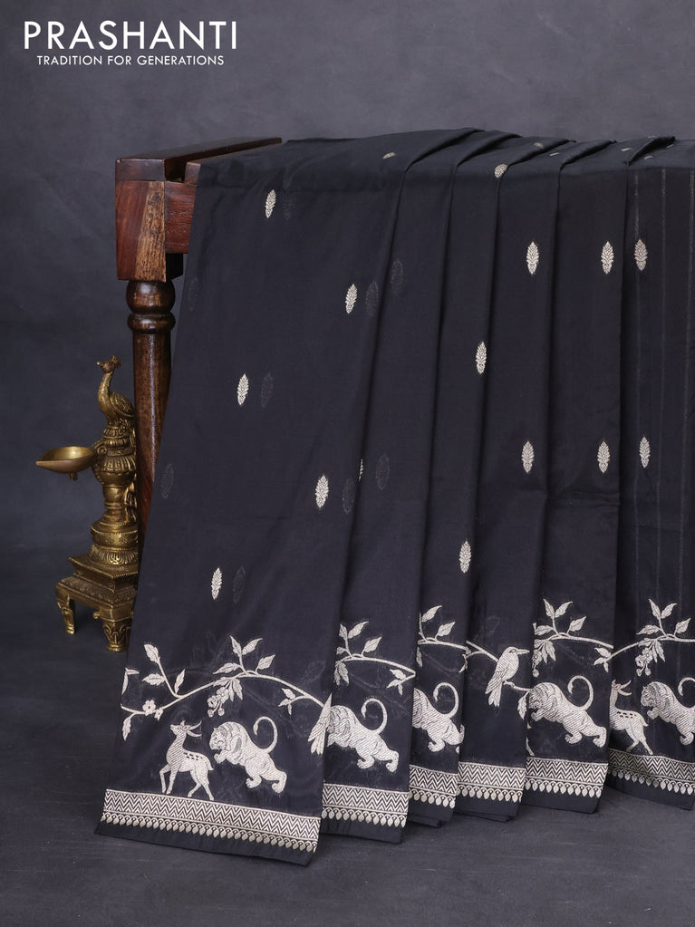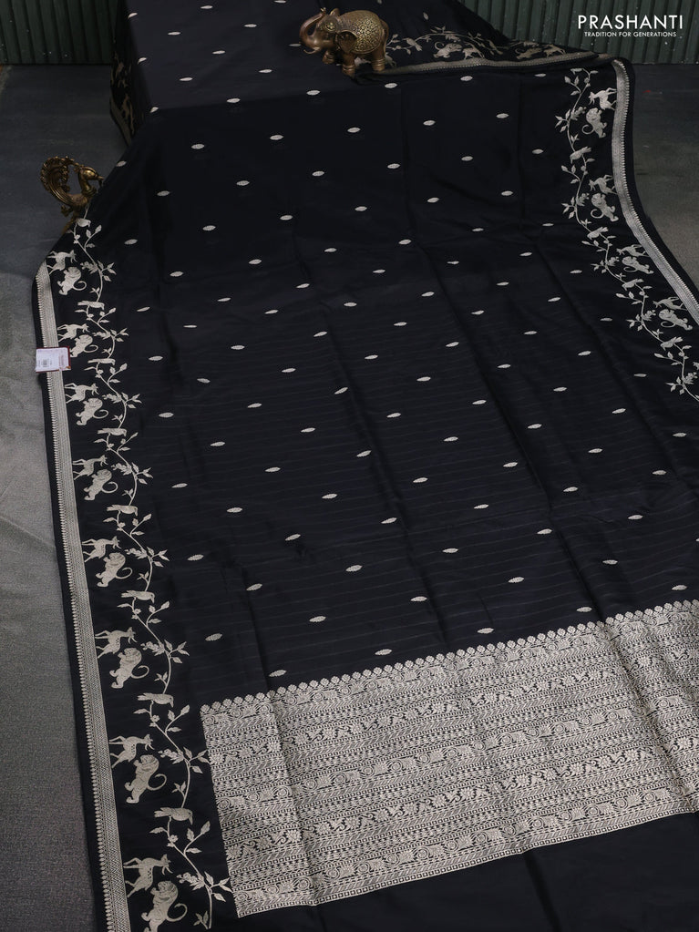 Banarasi semi katan silk saree black with zari woven buttas and rich zari woven border