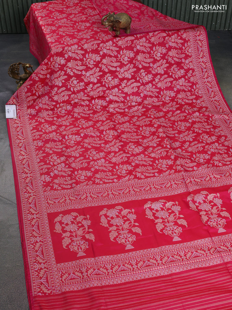 Banarasi semi katan silk saree reddish pink with allover zari weaves and zari woven border