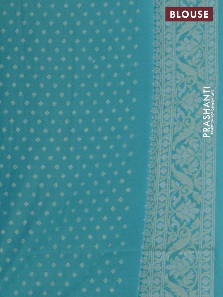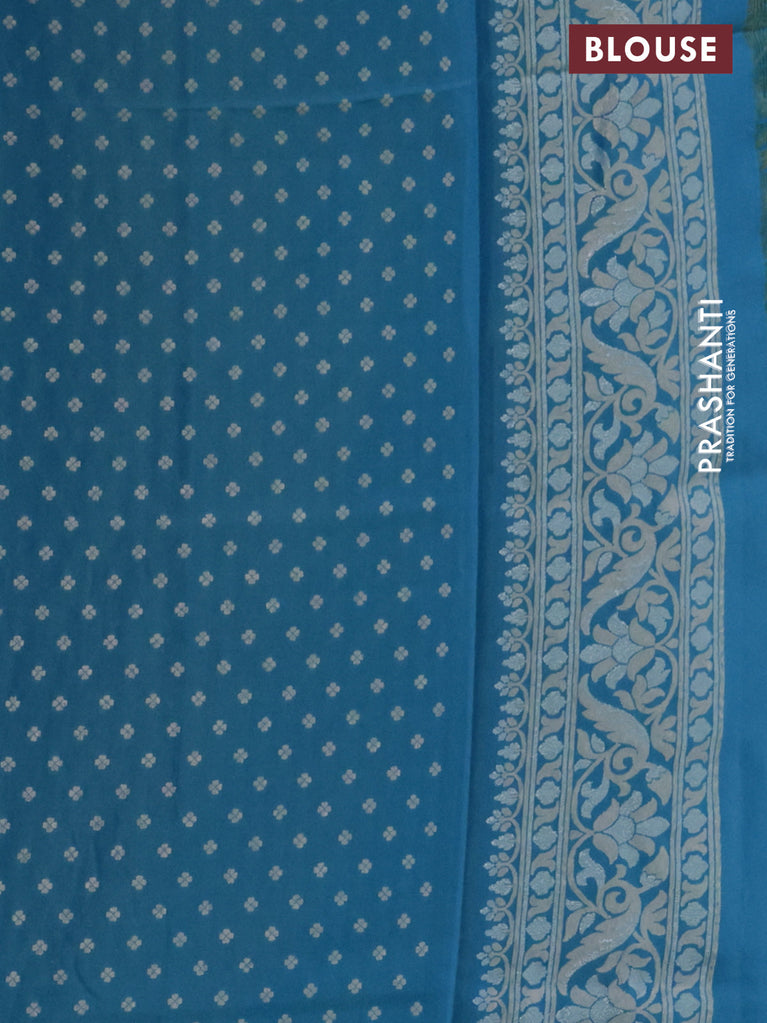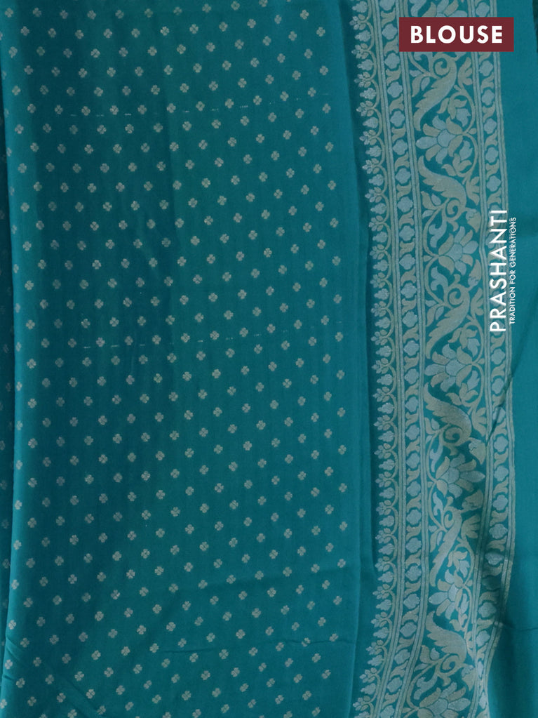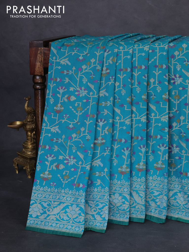 Banarasi semi katan silk saree teal bluish green with silver zari woven buttas and rich zari woven border