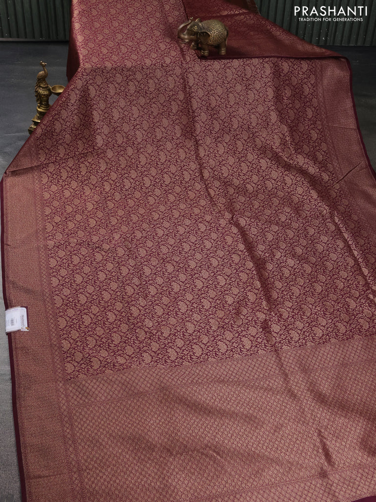 Banarasi semi silk saree deep maroon with allover thread & zari weaves and woven border