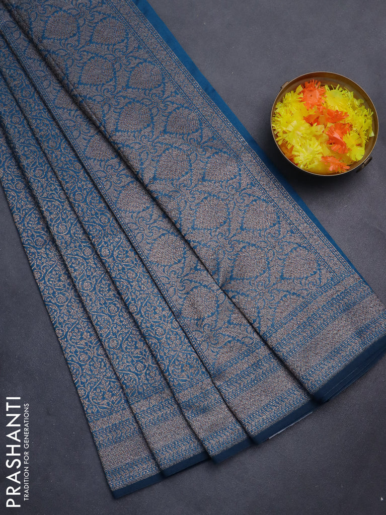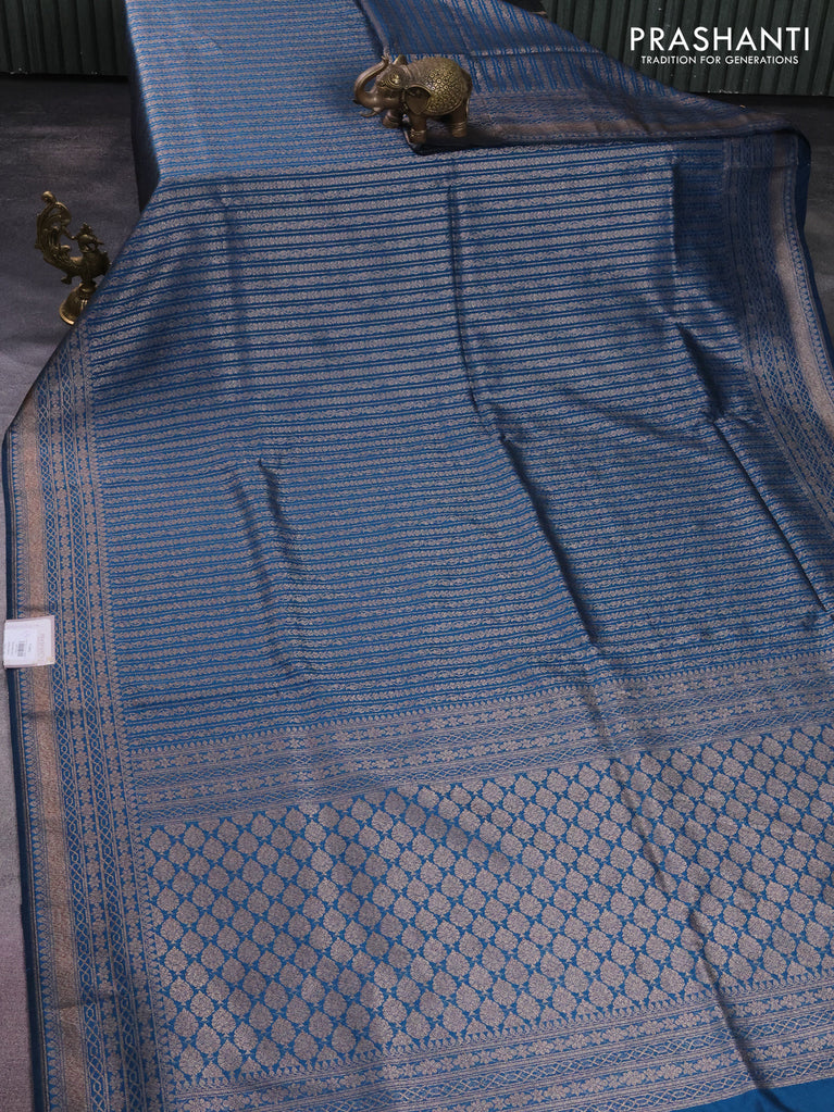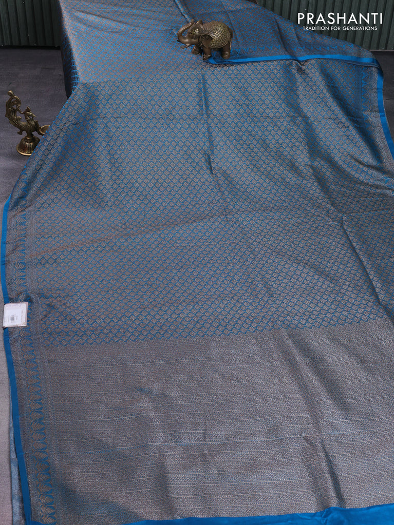 Banarasi semi silk saree cs blue with allover thread & zari weaves and woven border