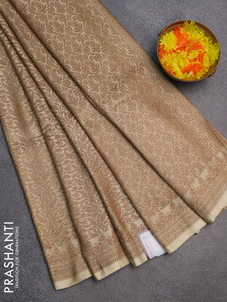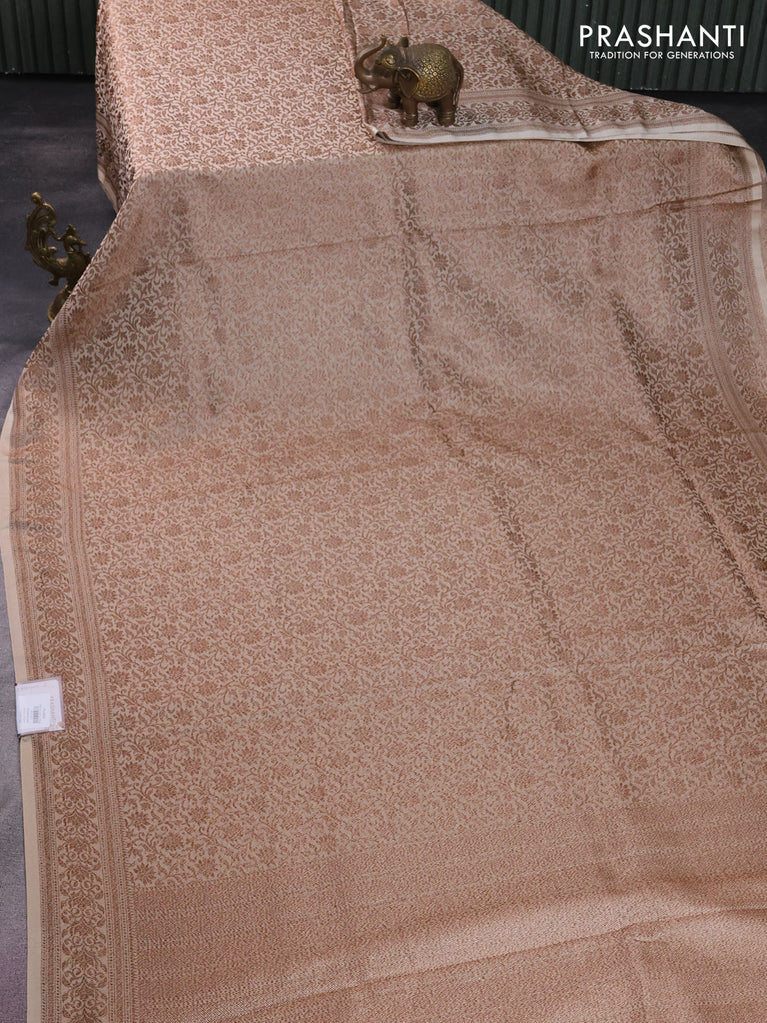Banarasi semi silk saree cream with allover thread & zari weaves and woven border