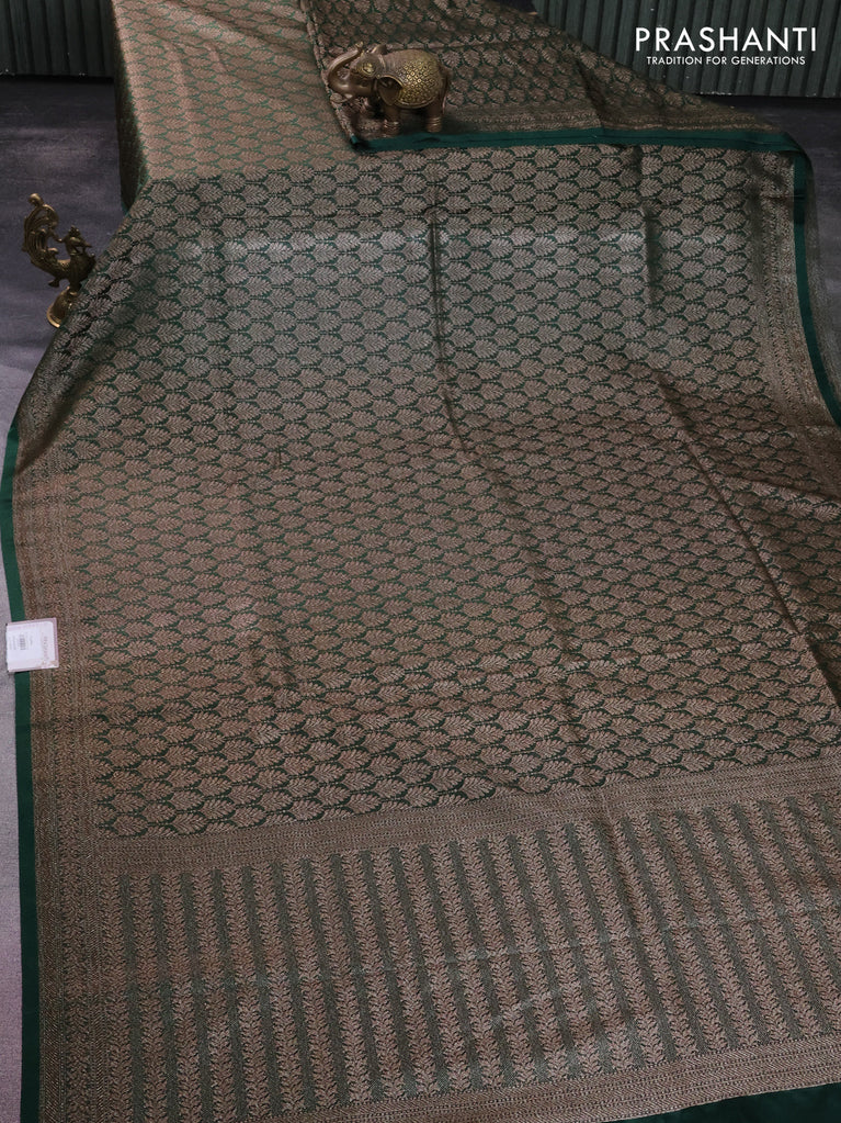 Banarasi semi silk saree bottle green with allover thread & zari weaves and woven border