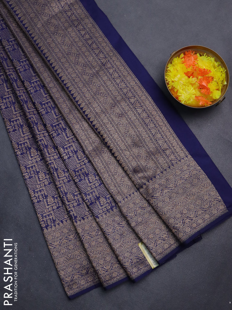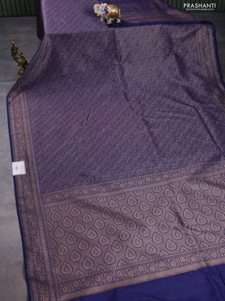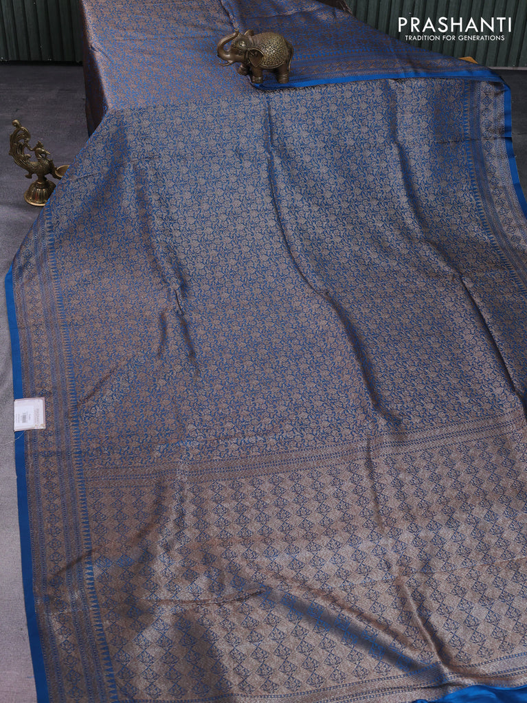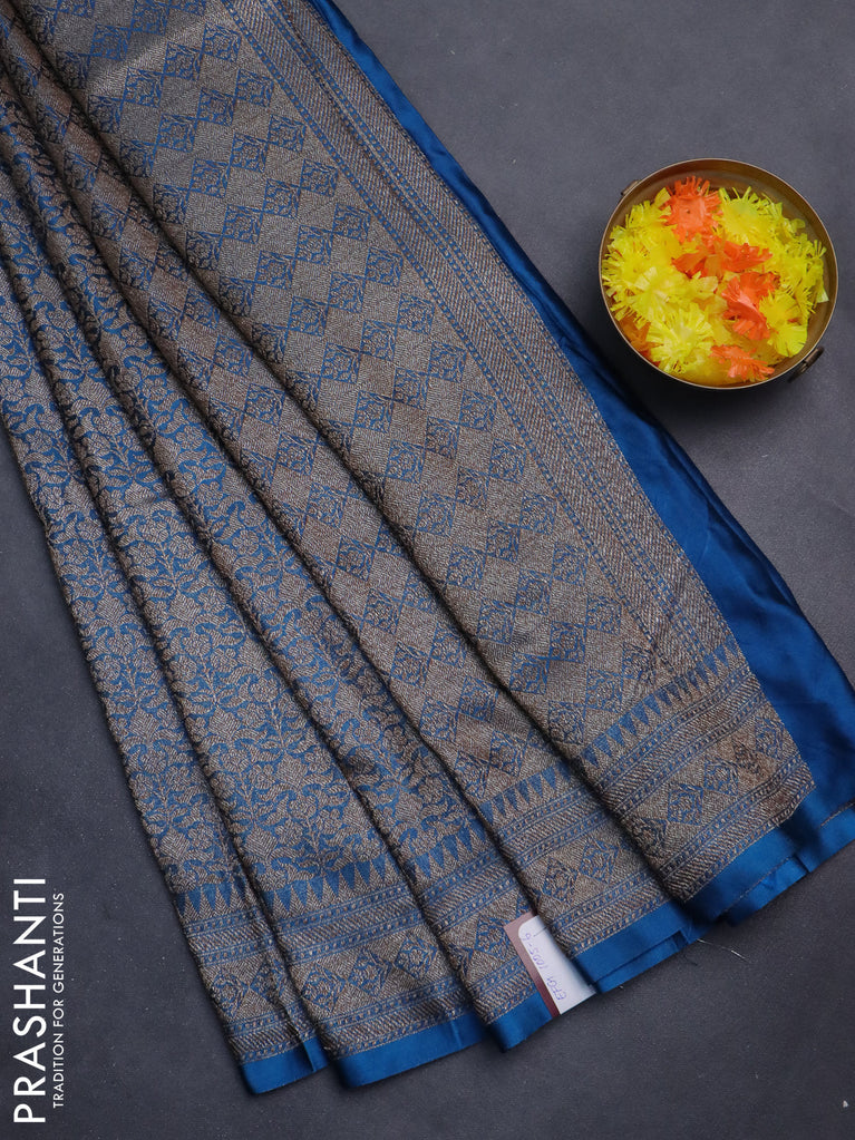 Banarasi semi silk saree blue with allover thread & zari weaves and woven border