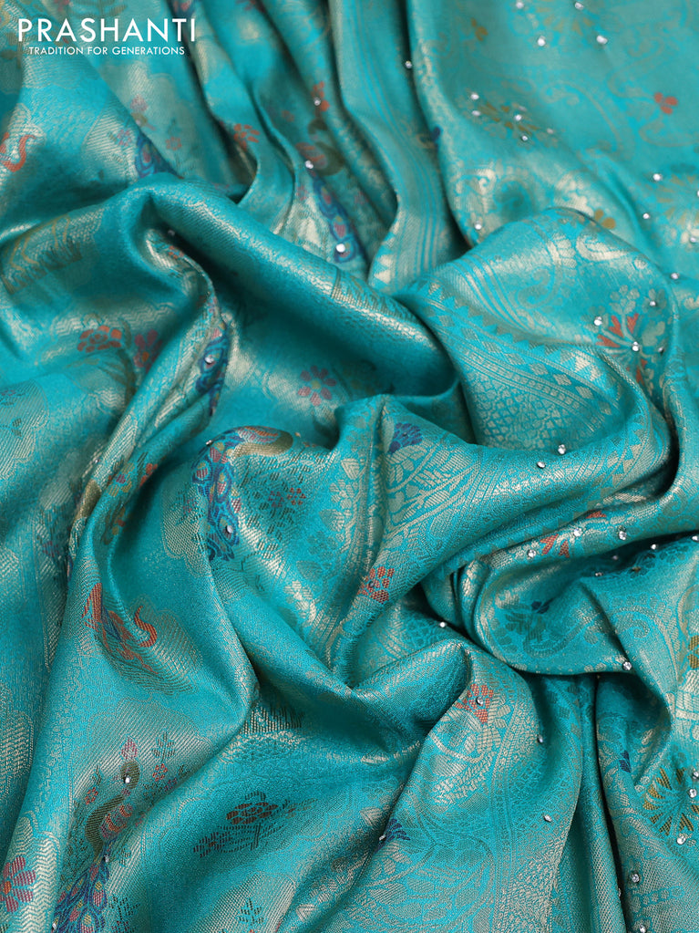 Banarasi silk saree teal green shade with allover zari woven brocade weaves and zaridosi gotapatti work border