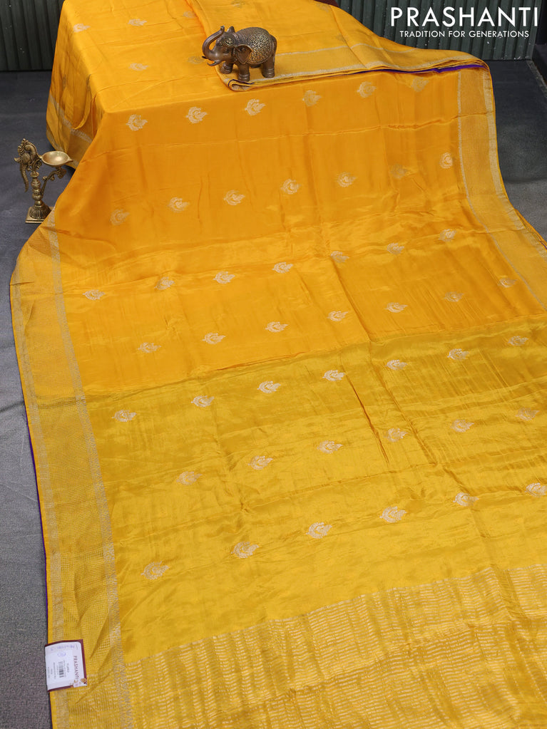 Banarasi silk saree yellow and violet with zari woven brids buttas and zari woven border