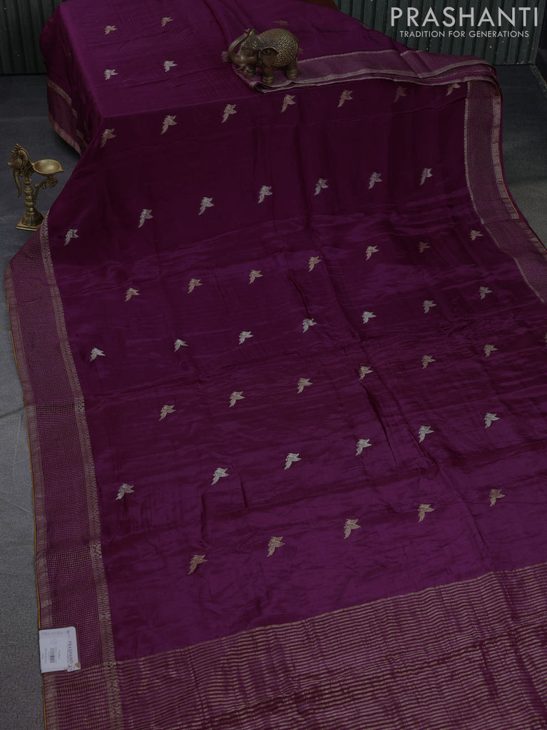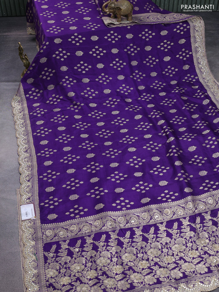 Banarasi silk saree violet with allover zari woven brocade weaves and zaridosi gotapatti work border