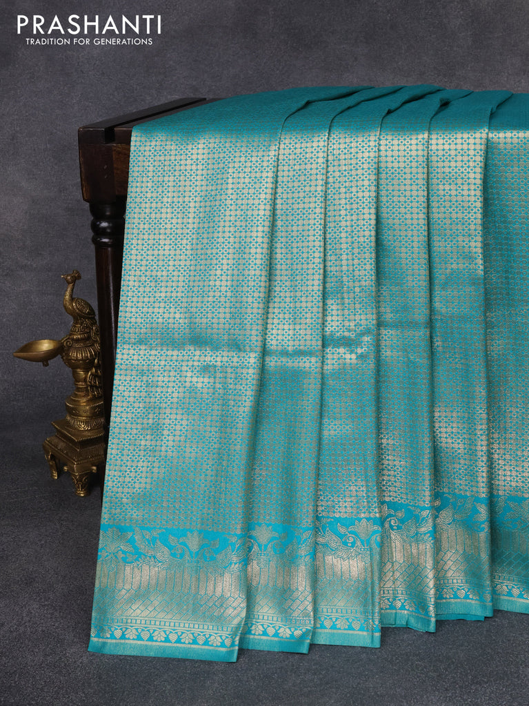 Banarasi silk saree teal green shade with allover zari woven brocade weaves and zari woven border