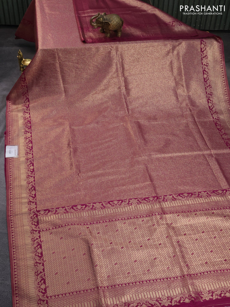 Banarasi silk saree wine shade with allover zari woven brocade weaves and zari woven border