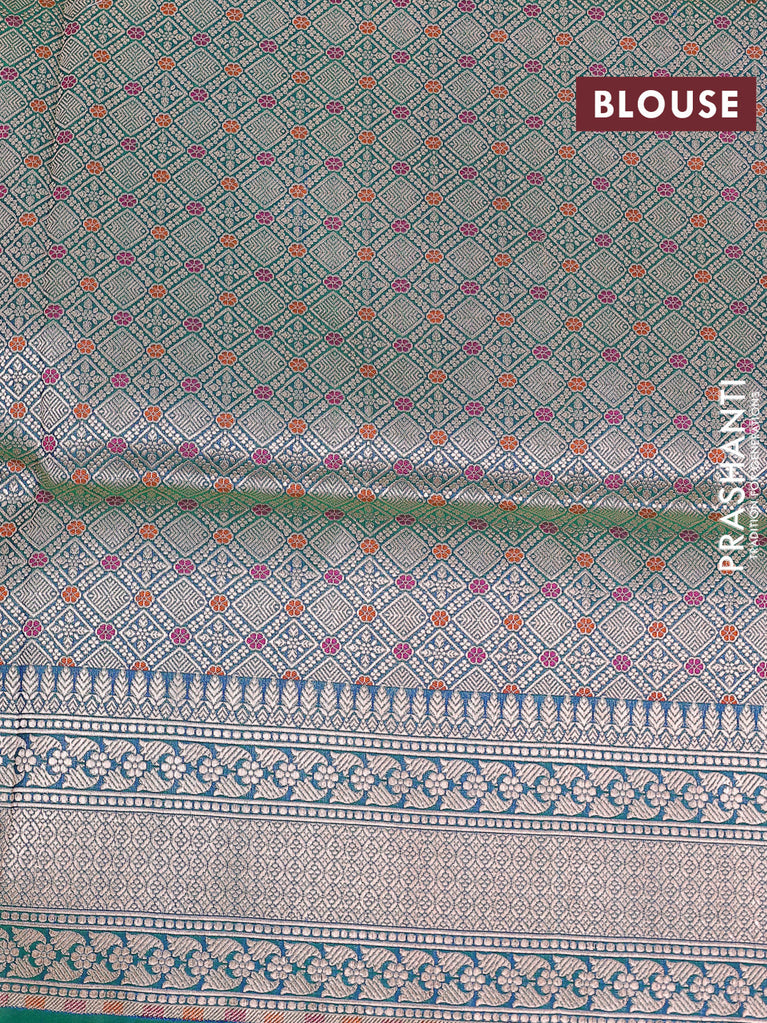 Banarasi uppada silk saree dual shade of bluish green with allover zari woven buttas and zari woven border