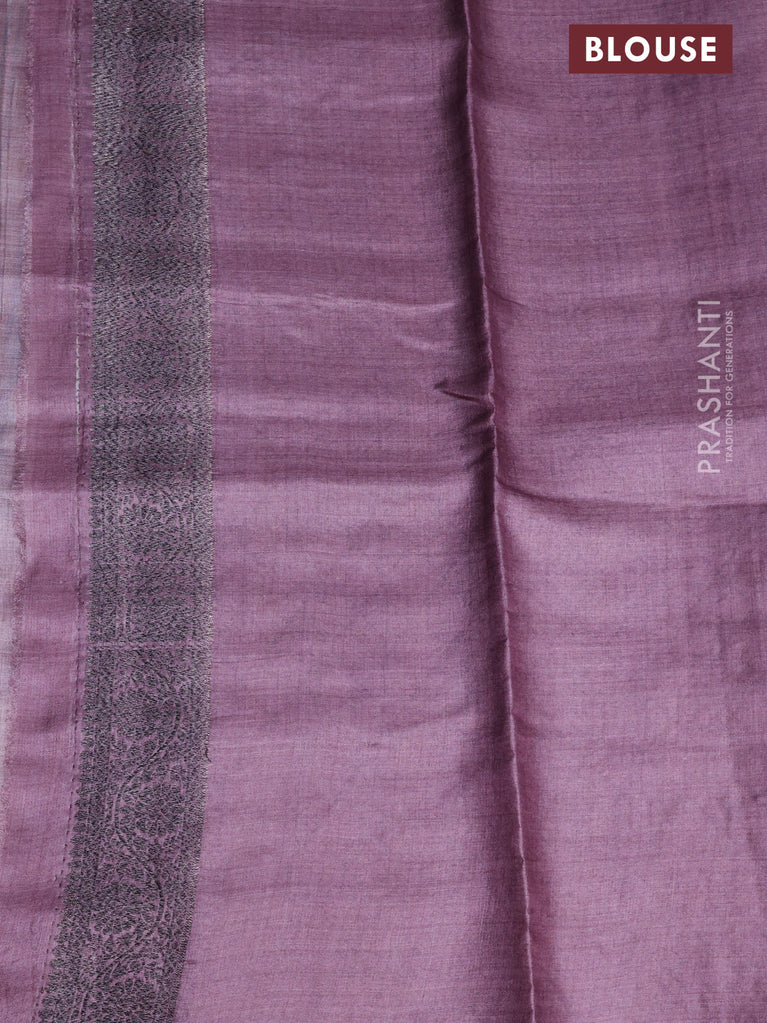 Banarasi tussar silk saree purple shade with woven buttas & floral digital prints and piping border
