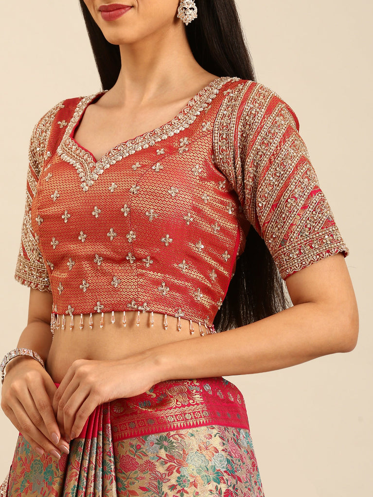 Banarsi silk saree with meenakari jaal , border & hand embroidery on border and readymade heavy blouse