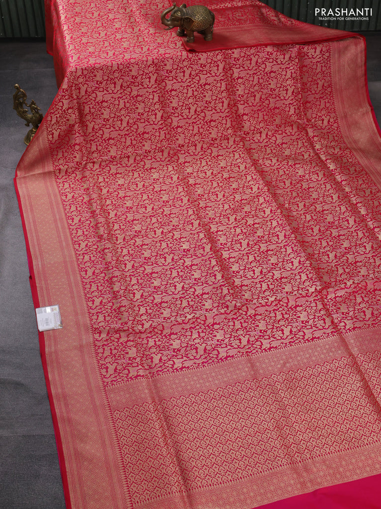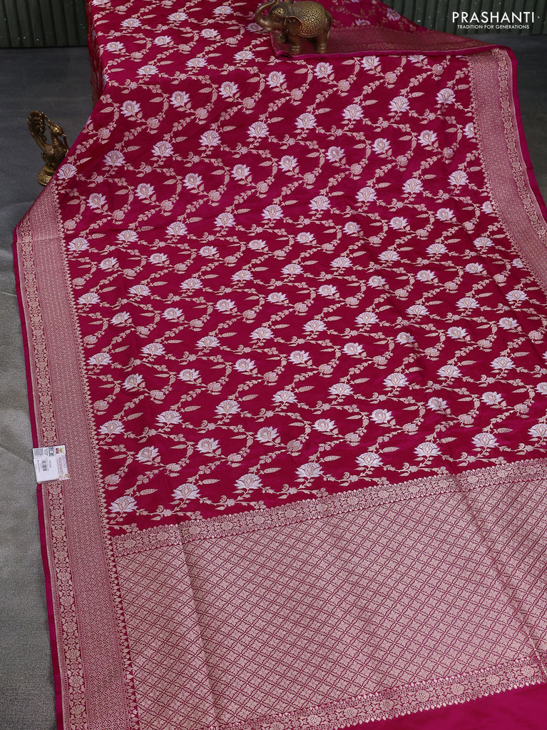 Banarasi uppada silk saree pink with allover silver & gold zari woven floral brocade weaves and zari woven border