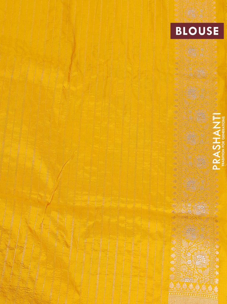 Banarasi uppada silk saree yellow with allover silver & gold zari woven brocade weaves and zari woven border
