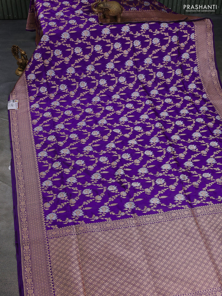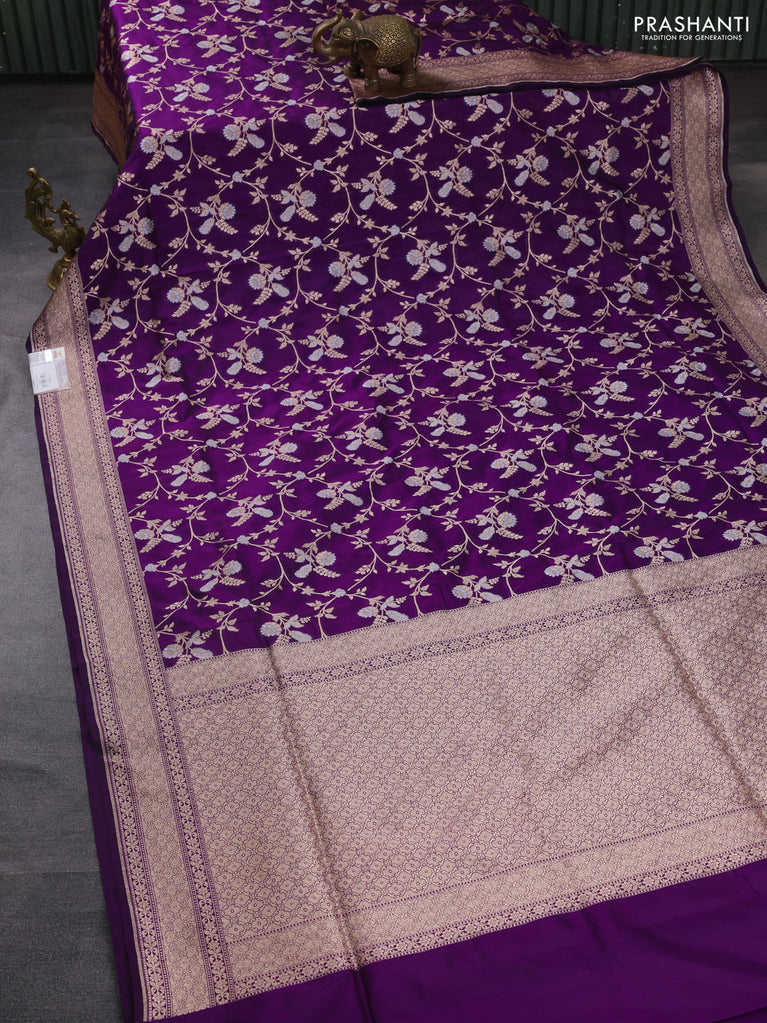 Banarasi uppada silk saree purple with allover silver & gold zari woven floral brocade weaves and zari woven border